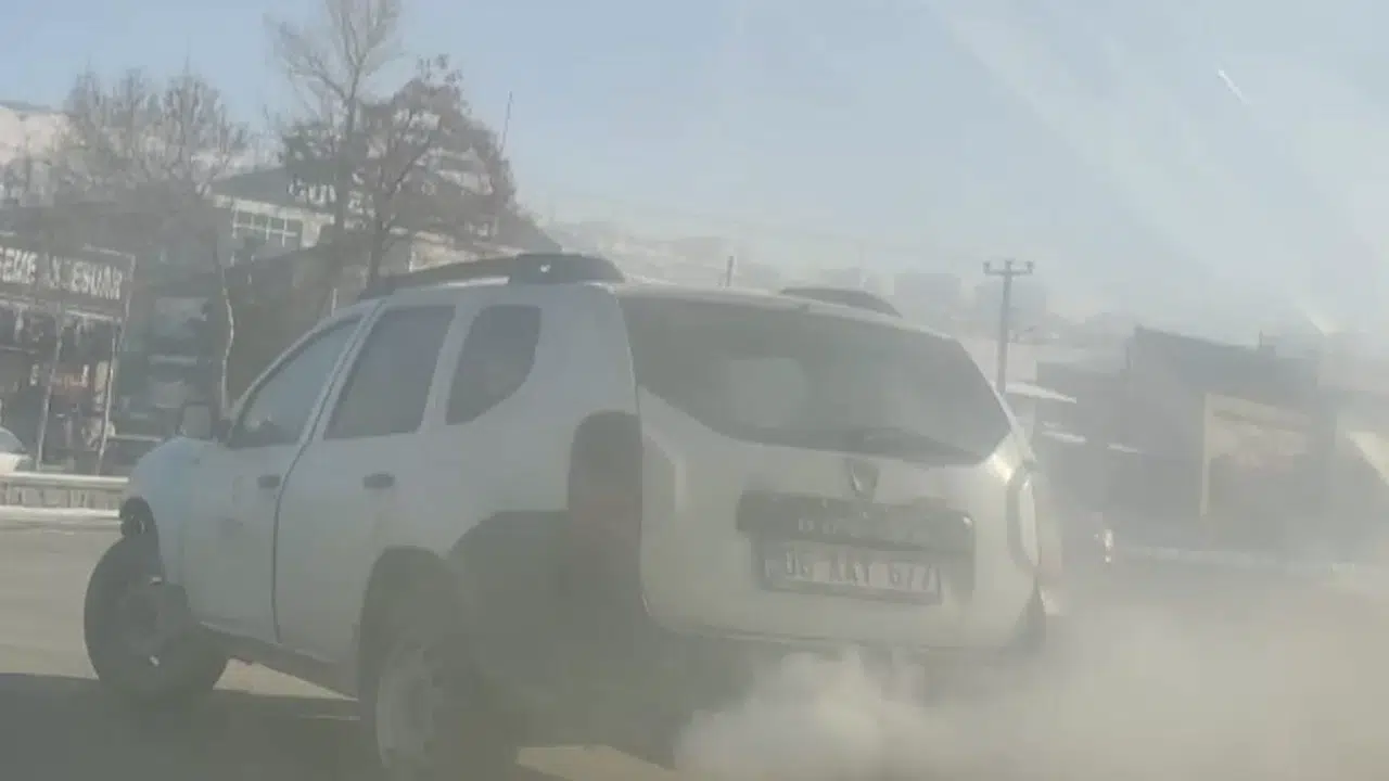 Erzurum - Artvin kara yolu sanayi bölgesinde seyreden egzozu arızalı otomobil sürücülere zor anlar yaşattı. Egzozundan çıkan yoğun dumandan dolayı görüş mesafesini sıfıra düşüren otomobil, arkasındaki sürücüleri büyük bir tehlikeye soktu. Uzun süre duruma aldırmadan yolda seyreden otomobil kavşaktan ayrılınca sürücüler rahat bir nefes aldı.
