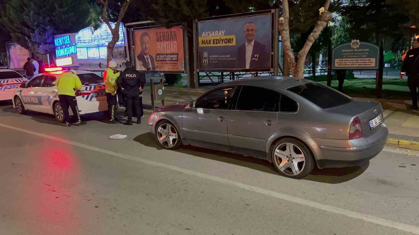 Olay gece yarısı Taşpazar Mahallesi Ebulfeyz Elçibey Caddesi’nde yaşandı. Edinilen bilgiye göre, kentin trafik güvenliğinin sağlanması ve olumsuzlukların önüne geçilmesi amacıyla Trafik Tescil ve Denetleme Şube Müdürlüğü ekipleri tarafından yapılan uygulamada durumundan şüphelenilen 68 AJ 134 plakalı otomobil durduruldu. Ehliyet, ruhsat ve Genel Bilgi Taraması (GBT) sorgusundan geçirilen sürücü Orhan Ç. (51) alkol muayenesinde 1,02 promil alkollü çıktı. Bunun üzerine ceza işlemlerine başlayan trafik ekipleri sürücüye alkollü araç kullanmaktan 4 bin 64 TL para cezası keserek ehliyetine 6 ay süreyle el koydu. Polis ekiplerinin işlem yaptığı sırada kendini görüntüleyen gazeteciyi fark eden sürücü gülümseyerek, “İyi çek kardeş bari. Aman iyi çek meşhur olalım şöyle, iyi çek şöyle” diyerek şaşırtan talepte bulundu. Alkollü sürücünün aracı olay yerine çağırılan bir yakınına teslim edilirken sürücü Aksaray Eğitim ve Araştırma Hastanesi Acil Servisinde yapılan sağlık kontrolünün ardından ifadesi alınmak üzere Aksaray Polis Merkezi Amirliğine götürüldü.