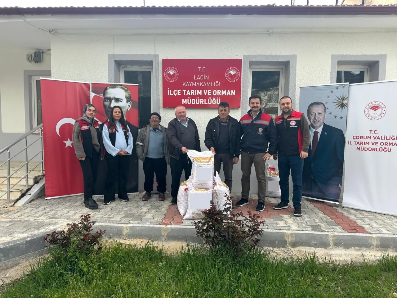 Çorum'un Dodurga ve Laçin ilçelerinde tarım arazilerinin kullanımını etkinleştirmek amacıyla yürütülen proje kapsamında çiftçilere yüzde 50 hibeli yerli nohut ve yağlık ayçiçeği tohumu dağıtıldı.