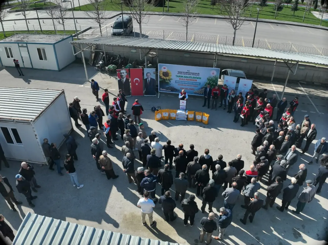 Törende, konuşmaların ardından İl Müdürü Taş ve Ziraat Odası Başkanı Adem Özdemir, üreticilere tohumları dağıttı.