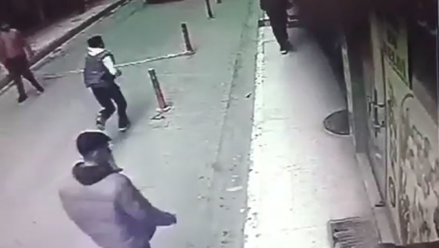 Yaşanan bıçaklı olay ise bir iş yerine güvenlik kamerası tarafından kayıt edildi.