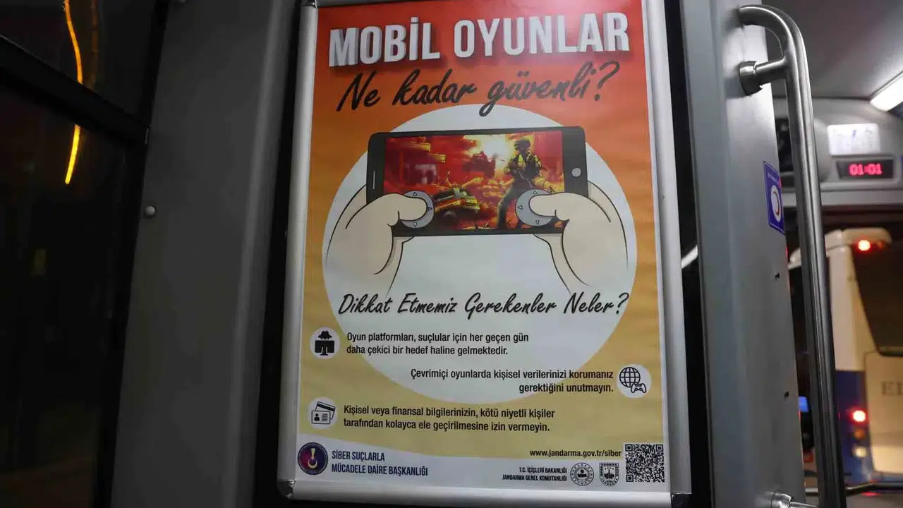 Elazığ İl Jandarma Komutanlığı tarafından halk otobüslerine ’Mobil oyunlar ne kadar güvenli’ yazılı afişler asılarak anlamlı bir farkındalık projesi hayata geçirildi.