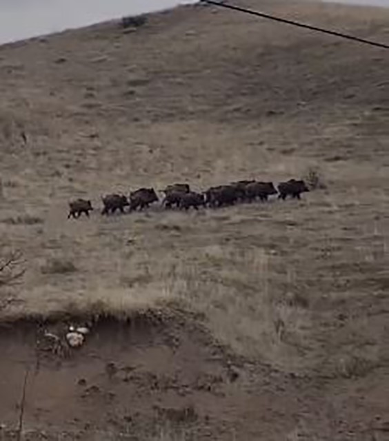 Elazığ’da Yiyecek Arayan Domuz Sürüsü Görüntülendi