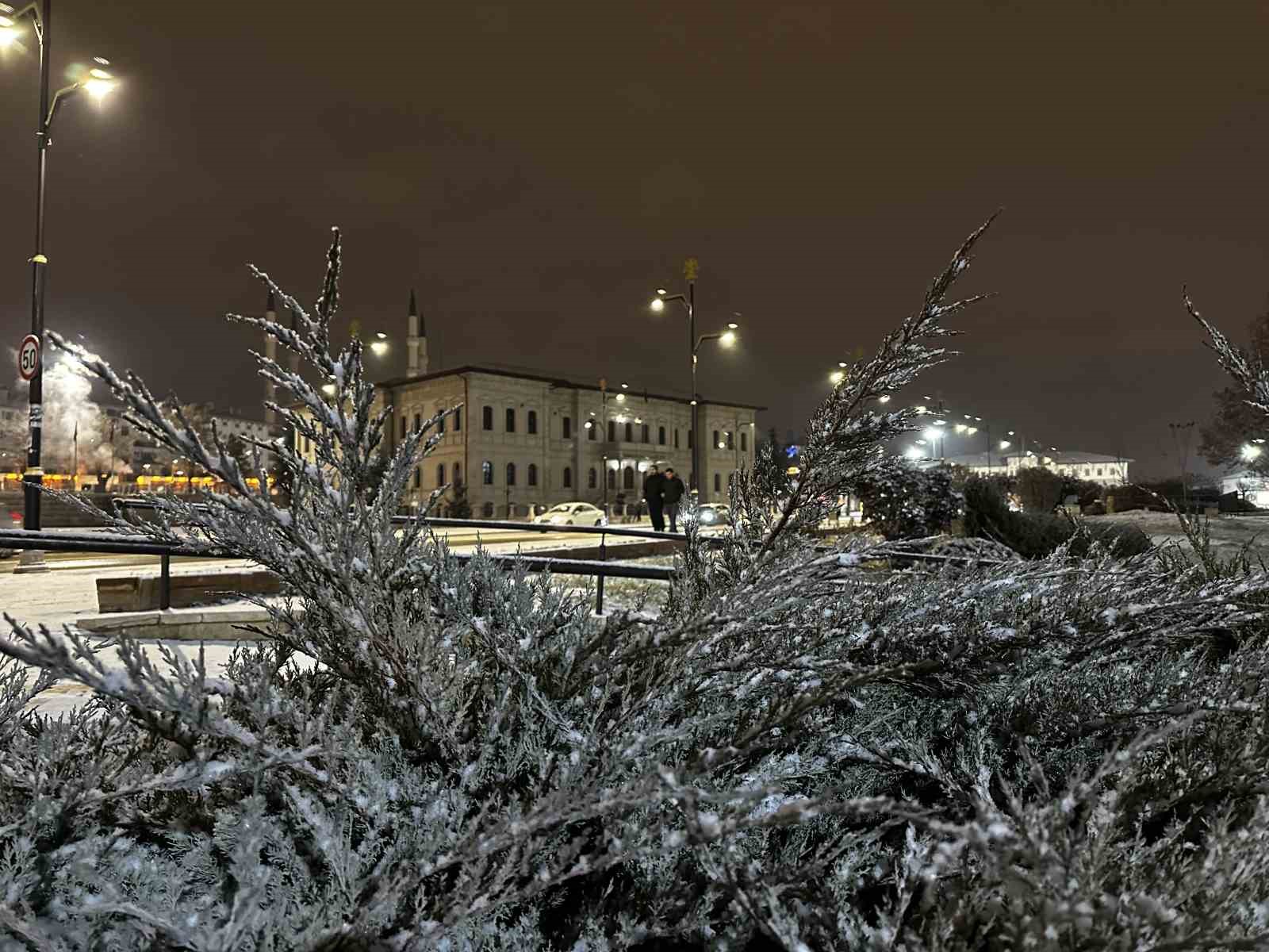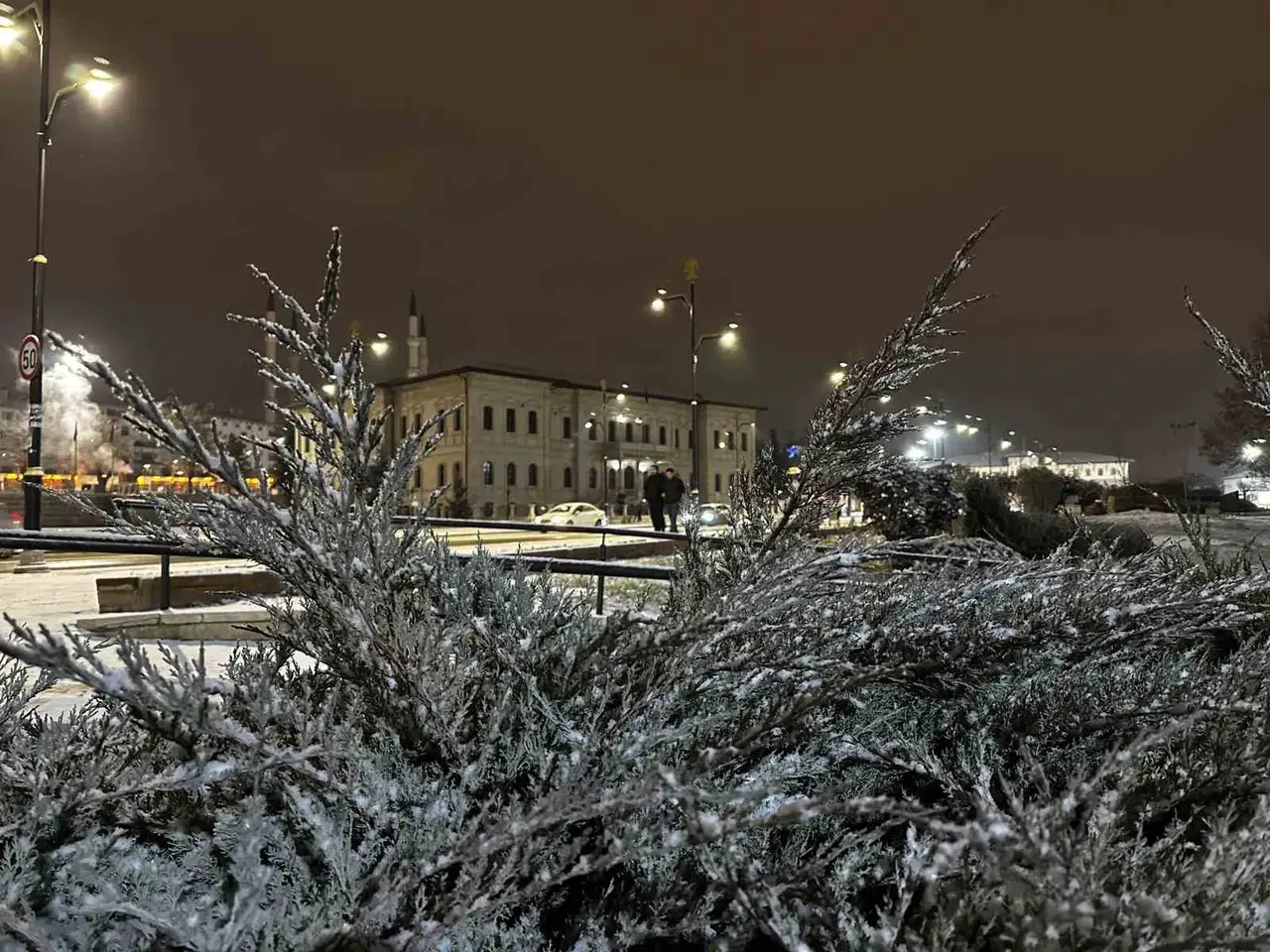Meteorolojinin uyarılarının ardından Sivas’ta gece saatlerinde yoğun kar yağışı etkili oldu. Termometrelerin sıfırın altında 1 derece gösterdiği kentte etkili olan kar yağışı tarihi kent meydanında masalsı görüntüler sundu. 21 Aralık olarak kabul edilen en uzun gecede karla bütünleşen tarihi yapılar ortaya kartpostallık görüntüler çıkardı. Kar yağışını fırsat bilen bazı vatandaşlar yürüyüş yaparak karın tadını çıkardı.