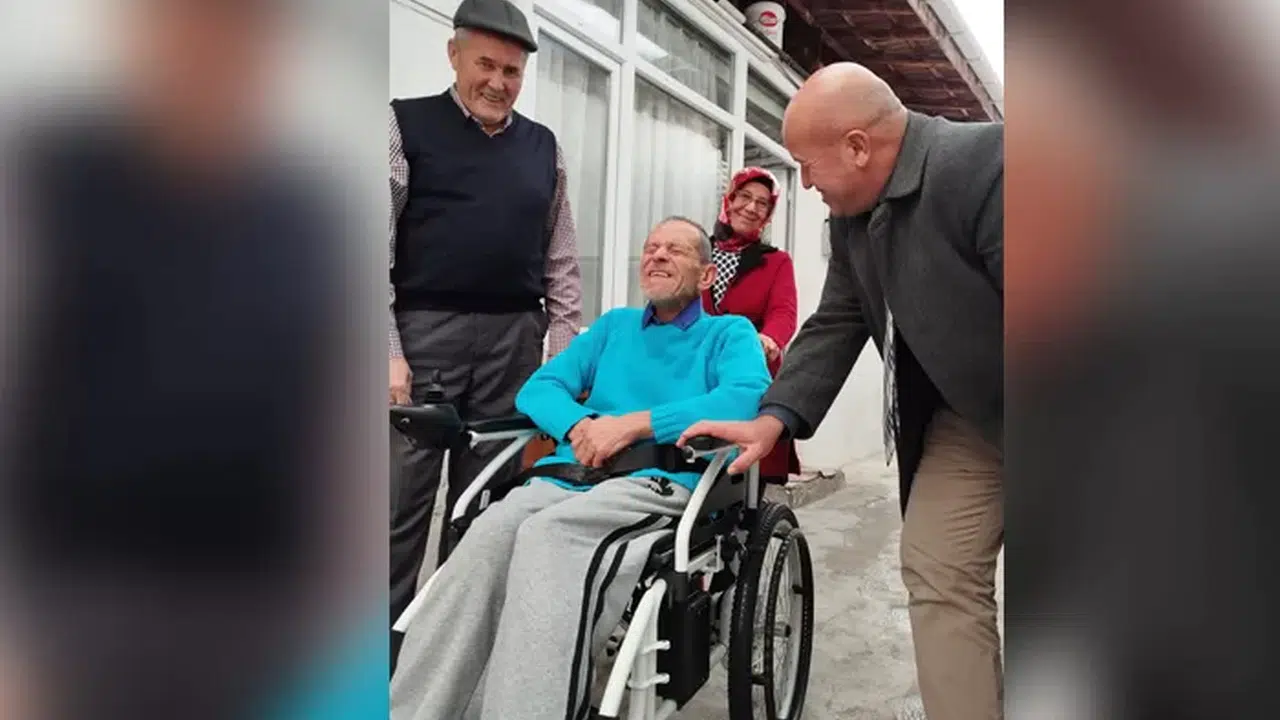 Çorum'un Sungurlu ilçesi İsmet Paşa Mahallesi'nde yaşayan yürüme ve konuşma engelli Murat Kan'ın tekerlekli sandalyesi olmadığını duyan hayırsever iş adamları harekete geçti. Hayırsever iş adamları tarafından satın alınan tekerlekli sandalye Kan'a hediye edildi. Tekerlekli sandalye ile evden çıkan Murat Kan, büyük sevinç yaşadı.