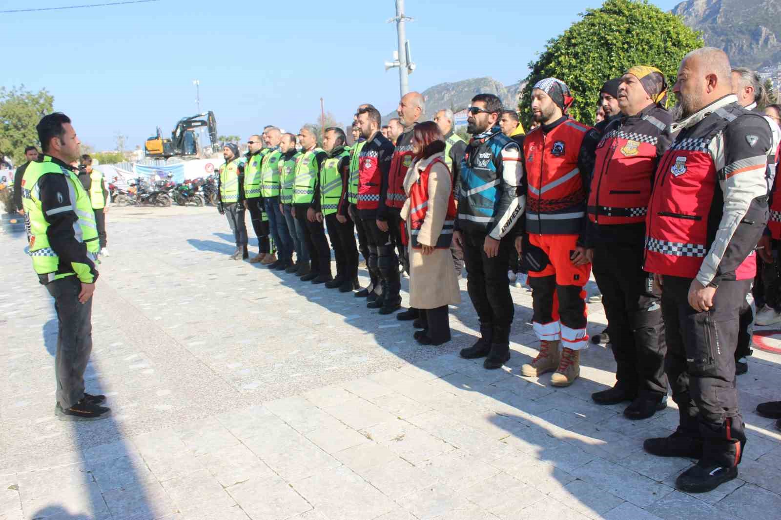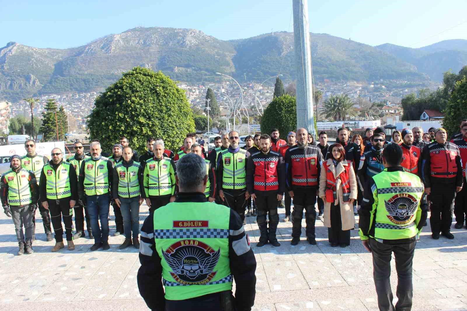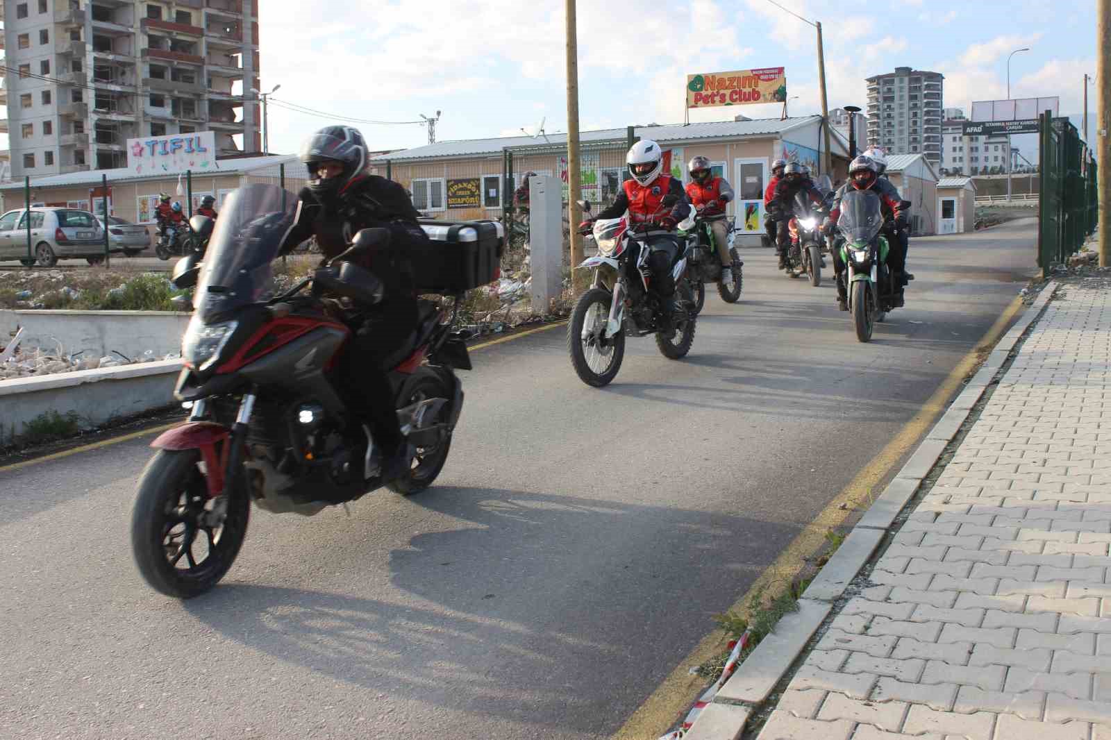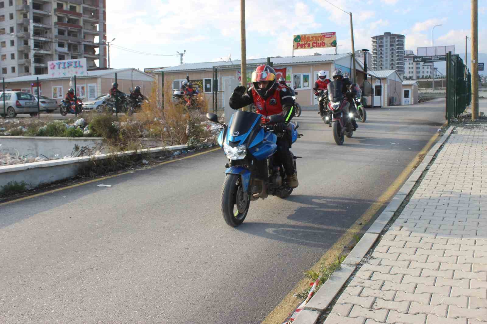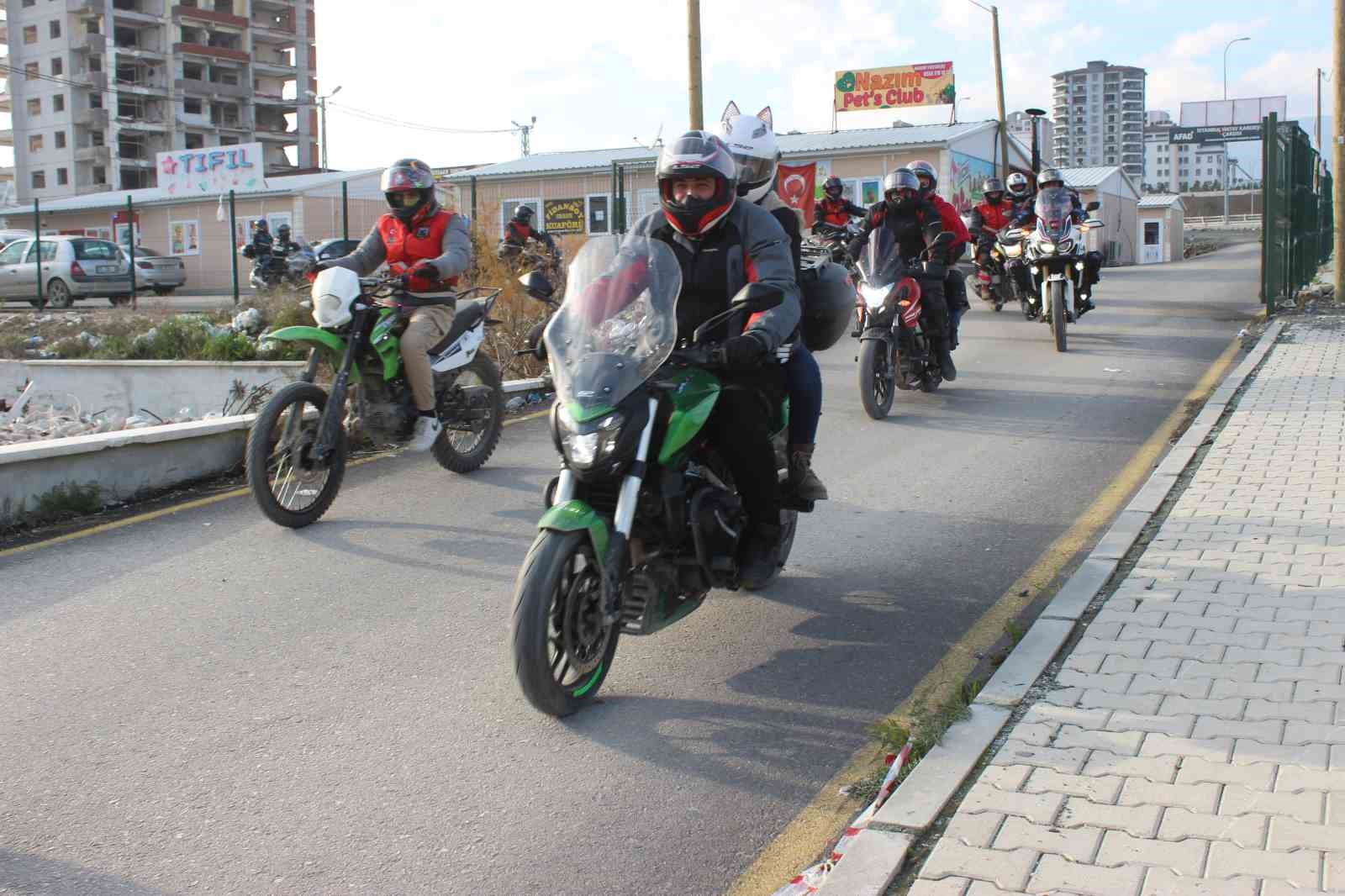 HATAY (İHA) – Depremin vurduğu Hatay’da bir araya gelen 70 motorcu, asrın felaketini unutturmamak adına birlik mesajı verdi.