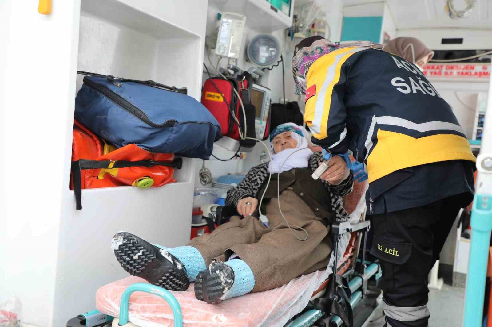 Van’ın Erciş ilçesinde yolu kar ve tipi nedeniyle ulaşıma kapanan kırsal mahallede yaşayan kalp ve tansiyon hastası 95 yaşındaki Gülizar Çağlar, 2 saat süren yoğun çalışmanın ardından hastaneye ulaştırıldı.