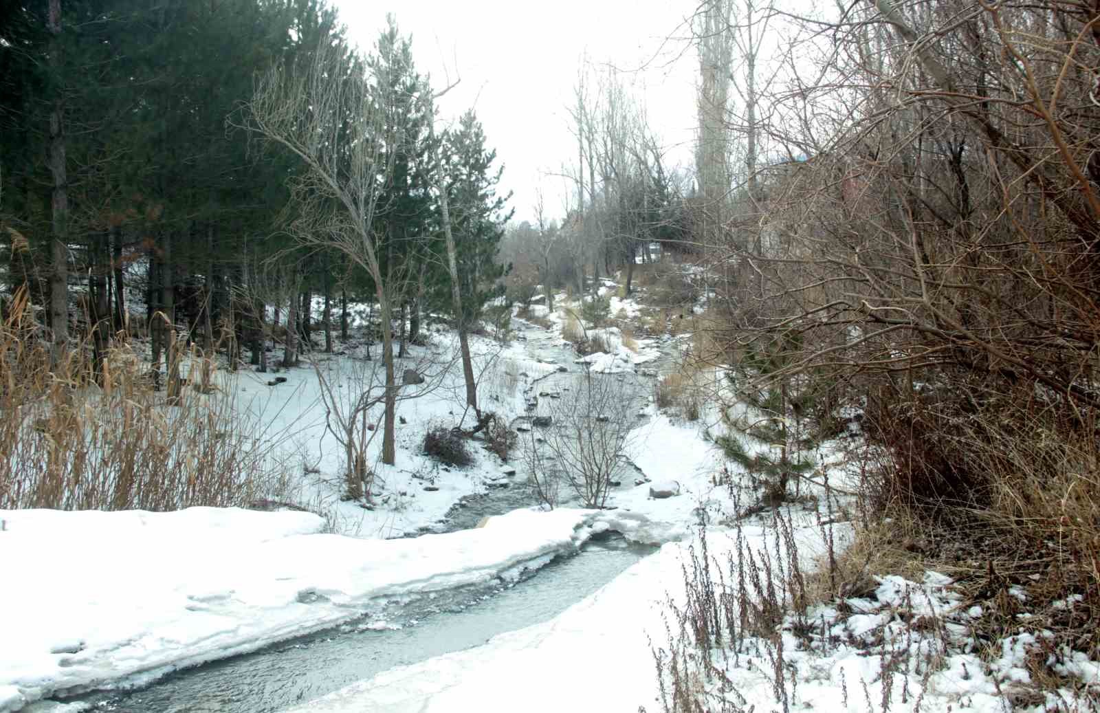 Soğuk havanın etkili olduğu Erzincan’da dereler buz tuttu.