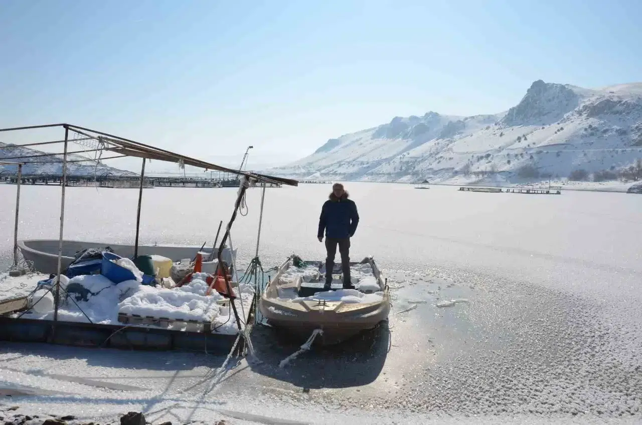 Yaklaşık 25 - 30 santimetreyi bulan buz kalınlığı baraj gölünde yapılmakta olan kültür alabalık kafeslerini buz altında bıraktı. Baraj göllünde balık üretimi yapan balıkçılar zor günler yaşarken balıkçıların balık havuzları tekneleri ve diğer ekipmanları buz tabakasının içinde kaldı.