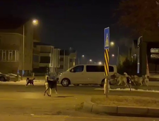 Gece saatlerinde Erzurum’da ortaya çıkan onlarca köpek vatandaşları tedirgin etti. Bir vatandaşın cep telefonu ile kaydettiği görüntülerde yaklaşık 20-25 köpeğin cadde üzerinde sürü halinde gezdiği ve zaman zaman birbiriyle dalaştıkları görüldü.