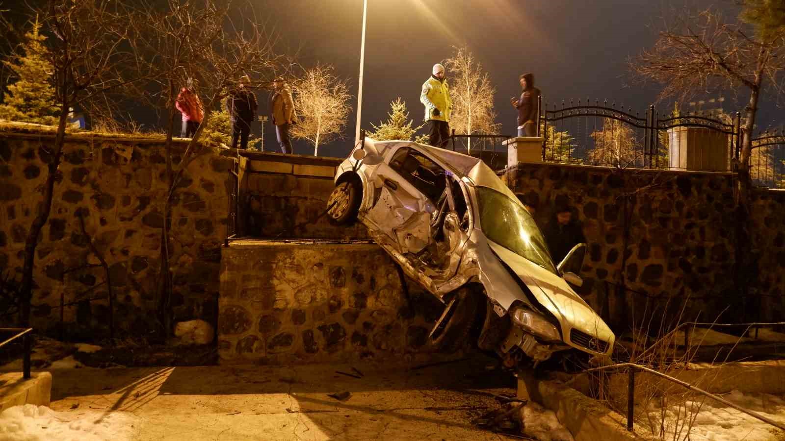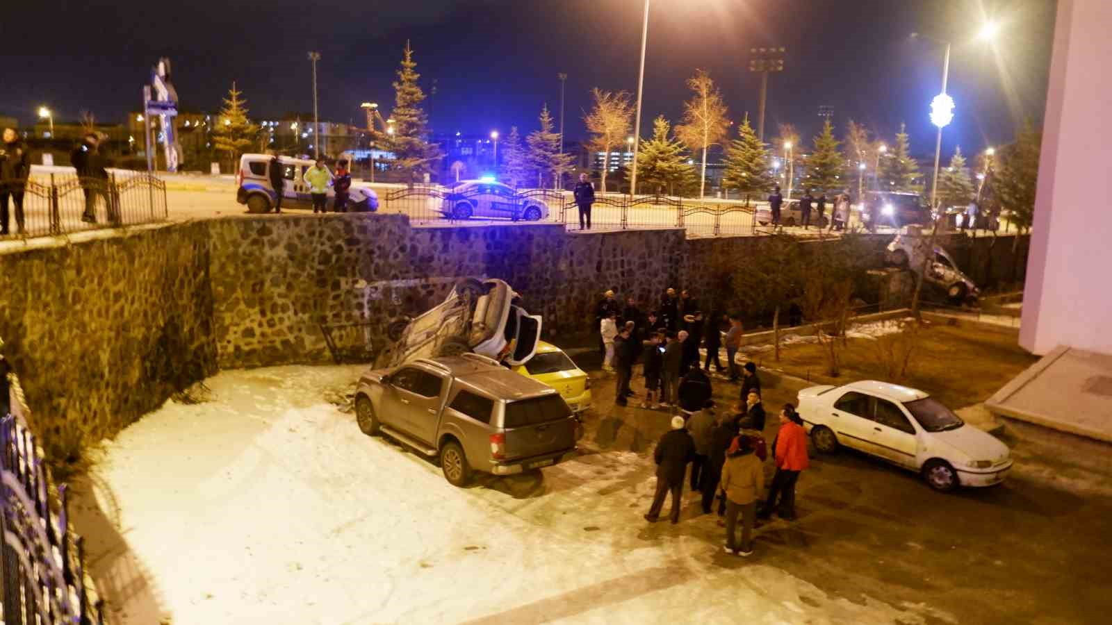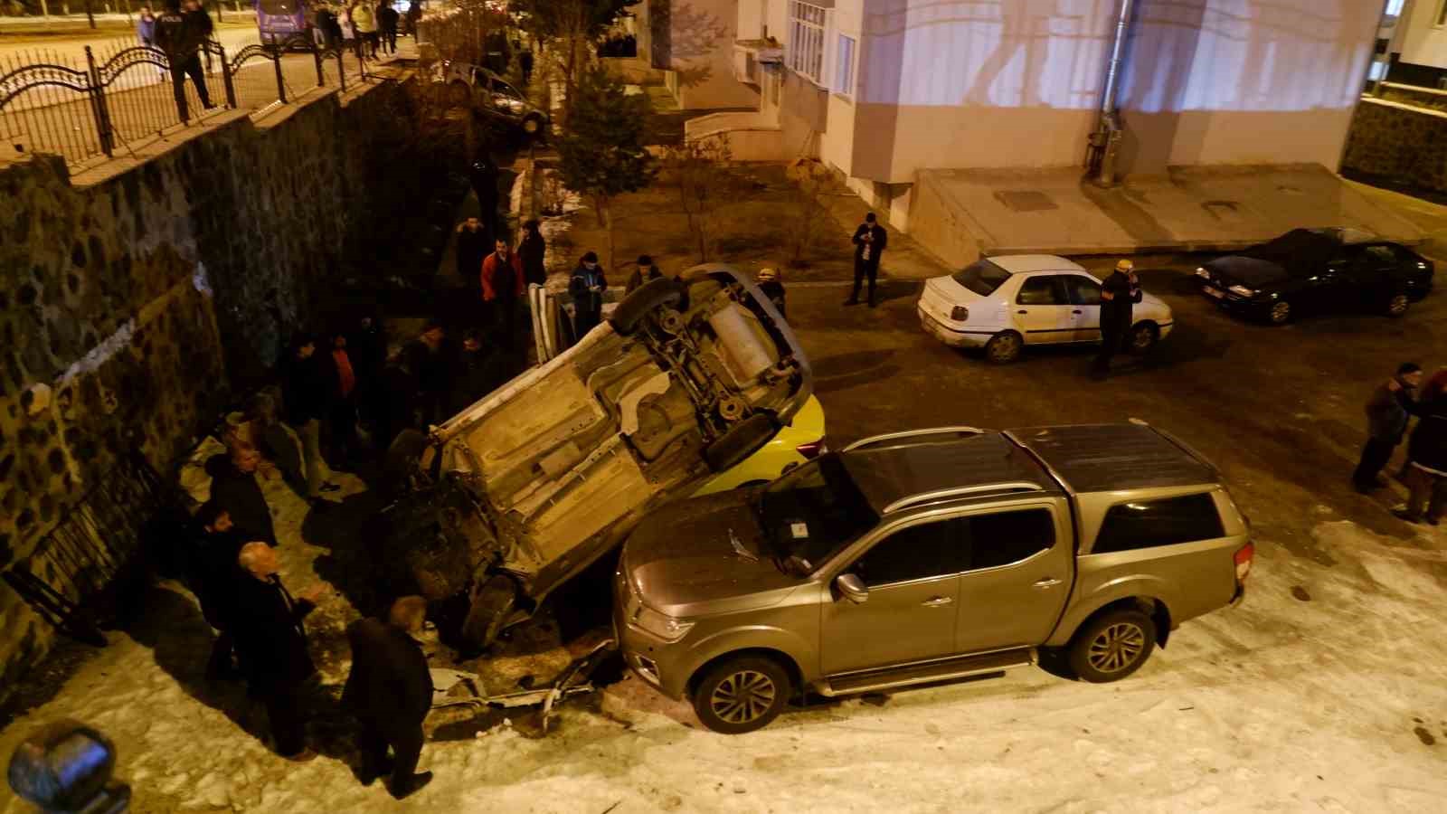 Erzurum’da Feci Kaza; Araçlar Bahçe Duvarından Aşağı Uçtu