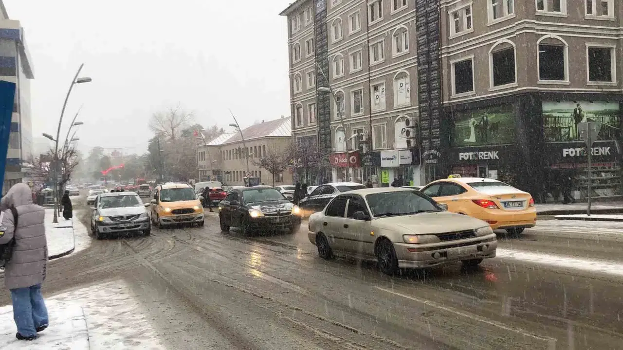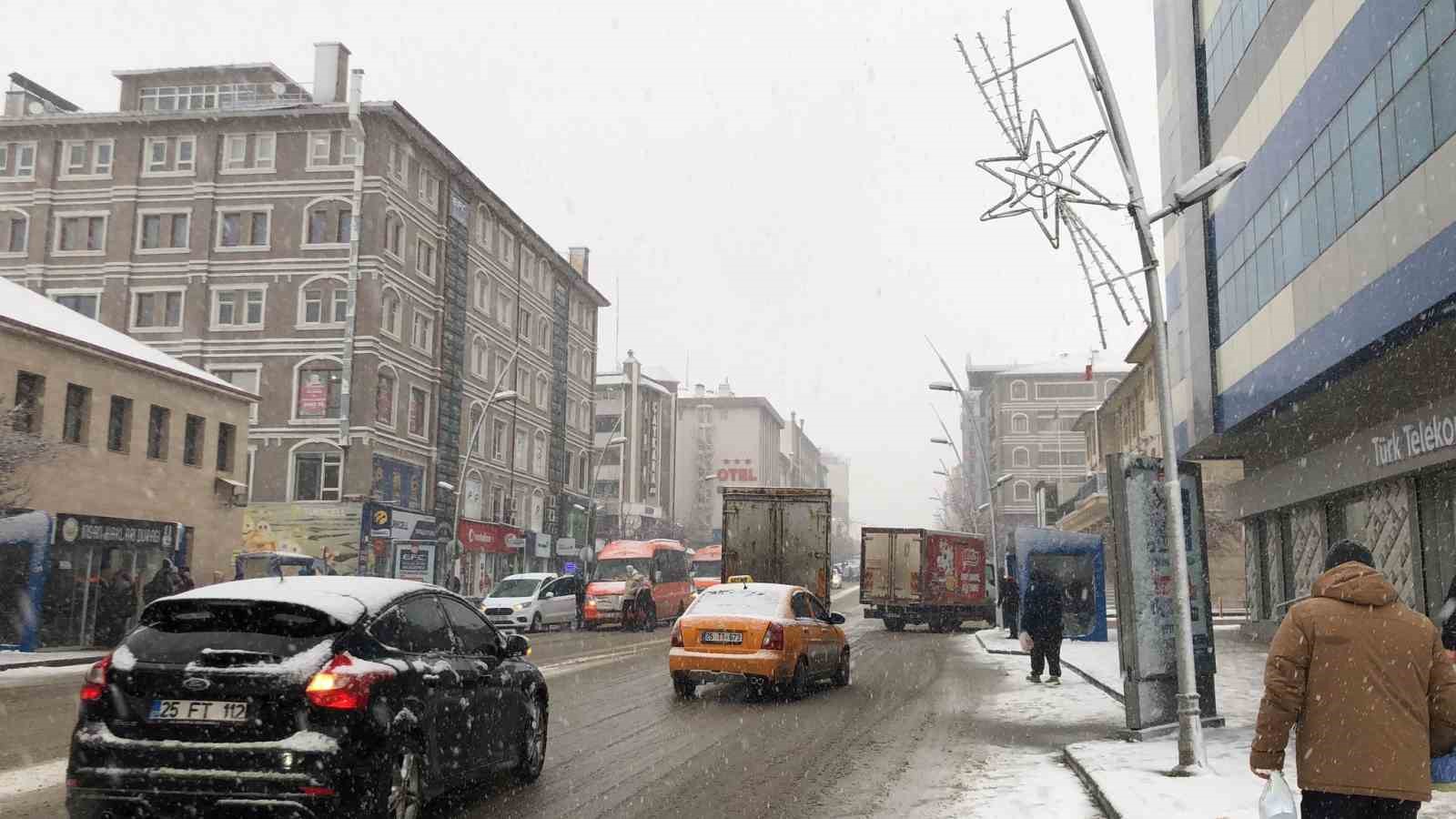 Erzurum’da öğle saatlerinde başlayan kar yağışı etkili tipi şeklinde oluyor.