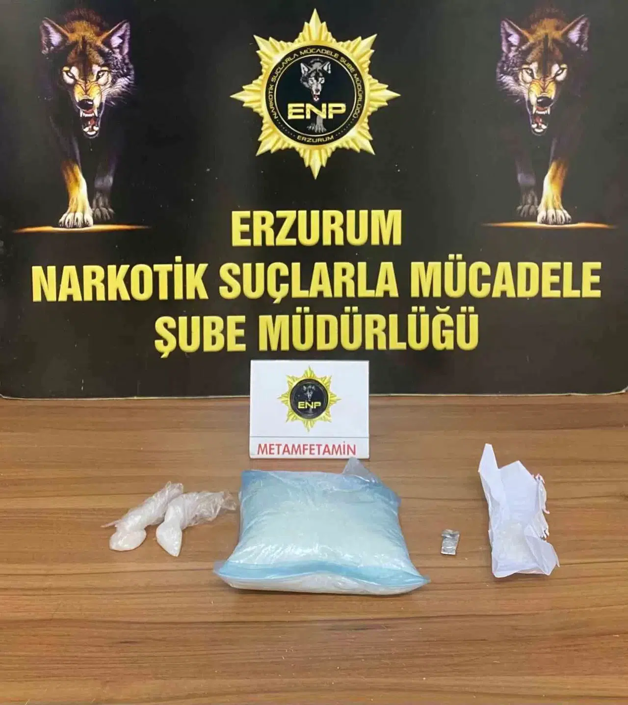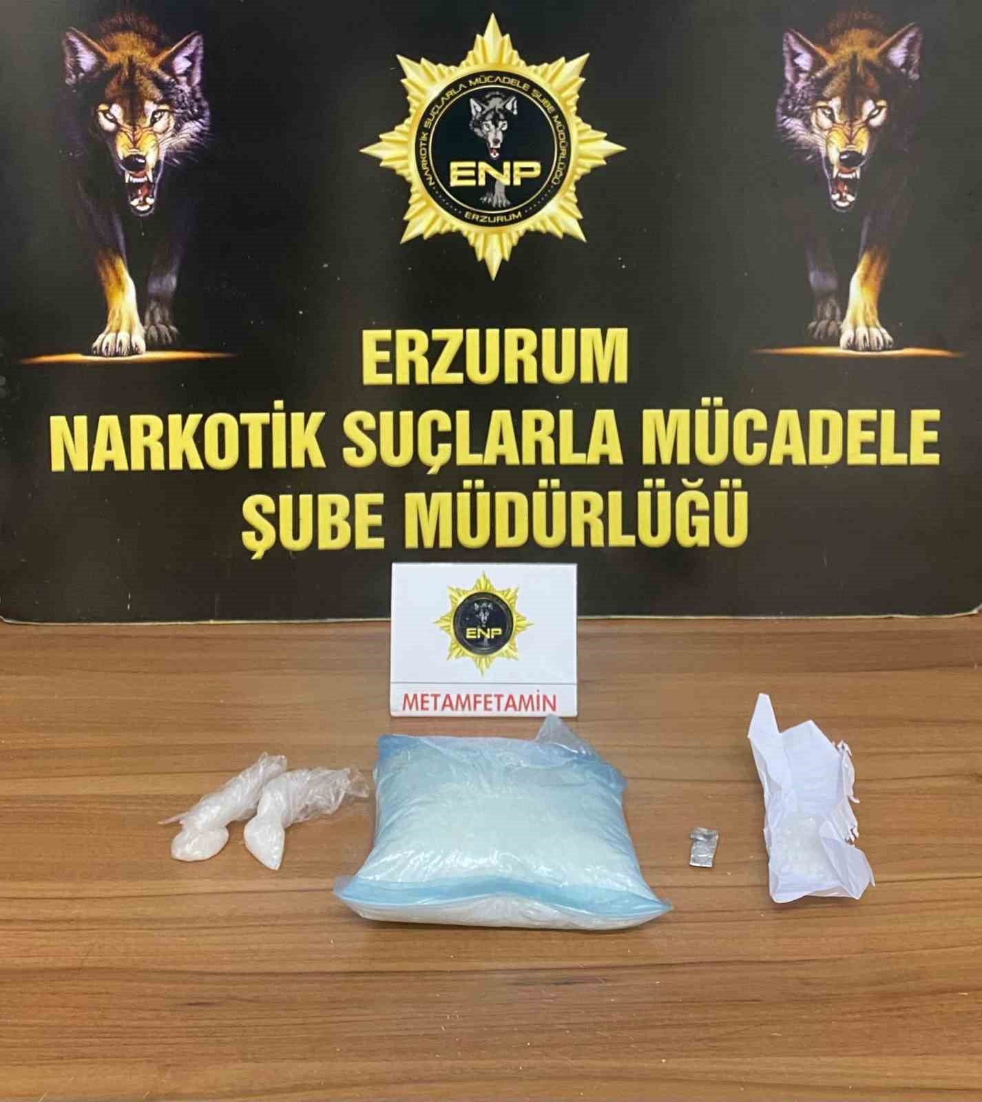 Erzurum Emniyet Müdürlüğü Narkotik Suçlarla Mücadele Şube Müdürlüğü ve İstihbarat Şube Müdürlüğünce gerçekleştirilen operasyonda sırt çantası içerisinde 1 kilogram 6,46 gram metamfetamin ele geçirildi.