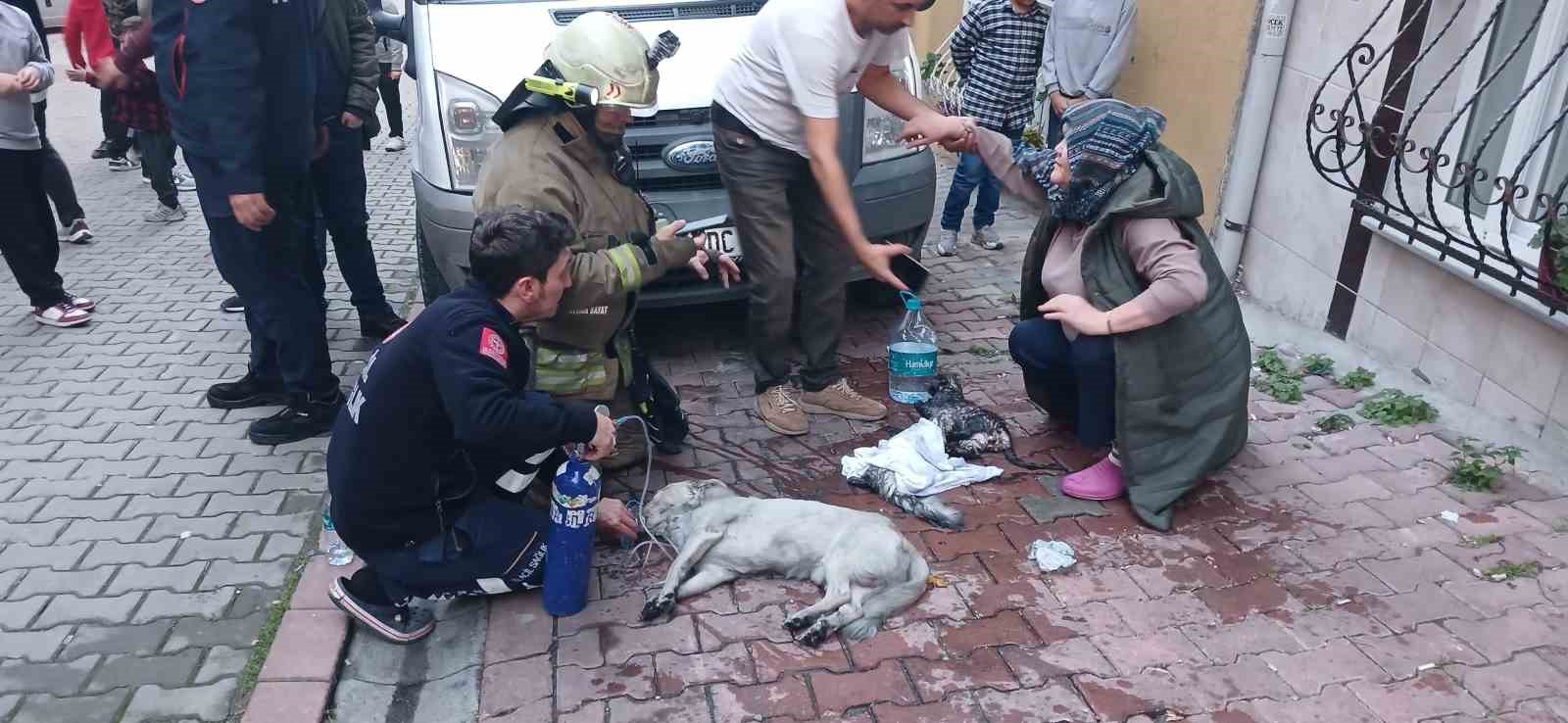 O anları anlatan Serpil Dedeman, “Çocuk yanıma panikle geldi. Bir baktım ki arkadan simsiyah dumanlar geliyor. İçeriye gittim. Salon olduğu gibi simsiyah. Koltuk yanıyordu. Kendim bir şeyler yapmaya çalıştım ama olacak gibi değildi. O panikle çocuğu alarak dışarı çıktım. Hayvanlarım içeride kaldı onun şokuyla. Köpeği de almaya çalıştım ama dumanın içinde kaldı çıkaramadım. Panikle kendimi dışarıya attım. 8 kedim vardı bir de köpeğim. 1 tanesi ölmüş galiba. Onları da götürdüler veterinere. Ambulansta gereken yapıldı. Orada hava verdiler. Şu anda 7 tanesi iyi ama bir tanesi ölmüş” dedi.