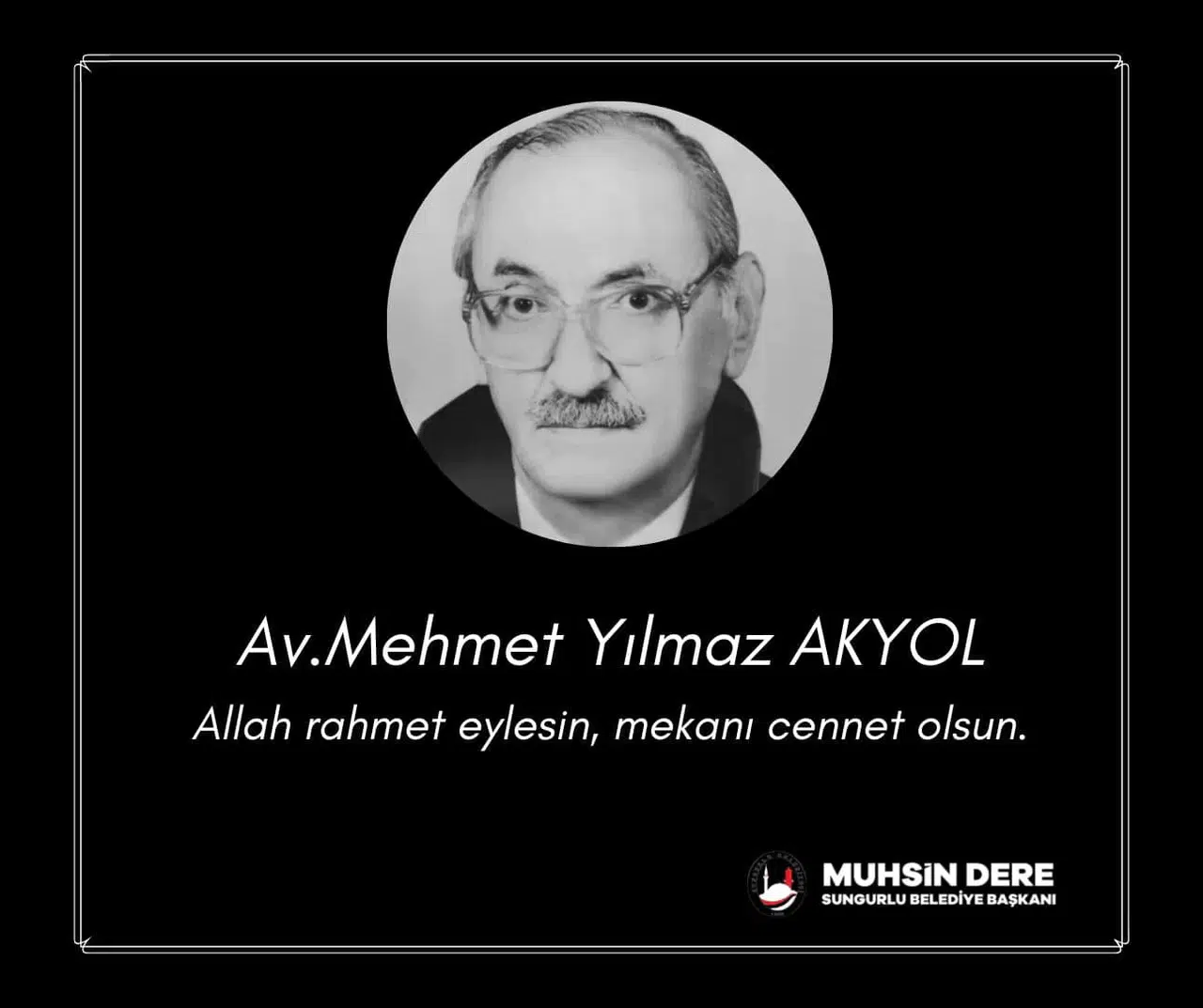 Dere açıklamasında “Sungurlumuzun Eski Belediye Başkanlarından Sn. Mehmet Yılmaz Akyol'un vefat haberini üzüntüyle öğrendim. Merhuma, Allah'tan rahmet; ailesine ve yakınlarına başsağlığı diliyorum” ifadelerine yer verdi.