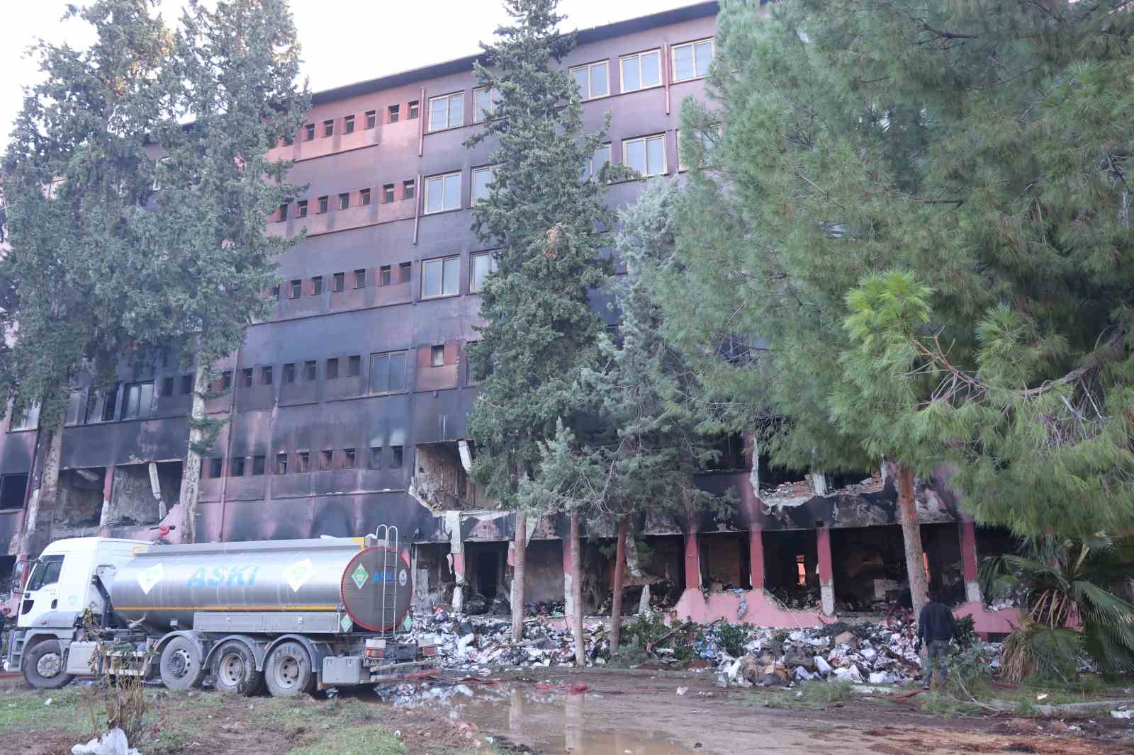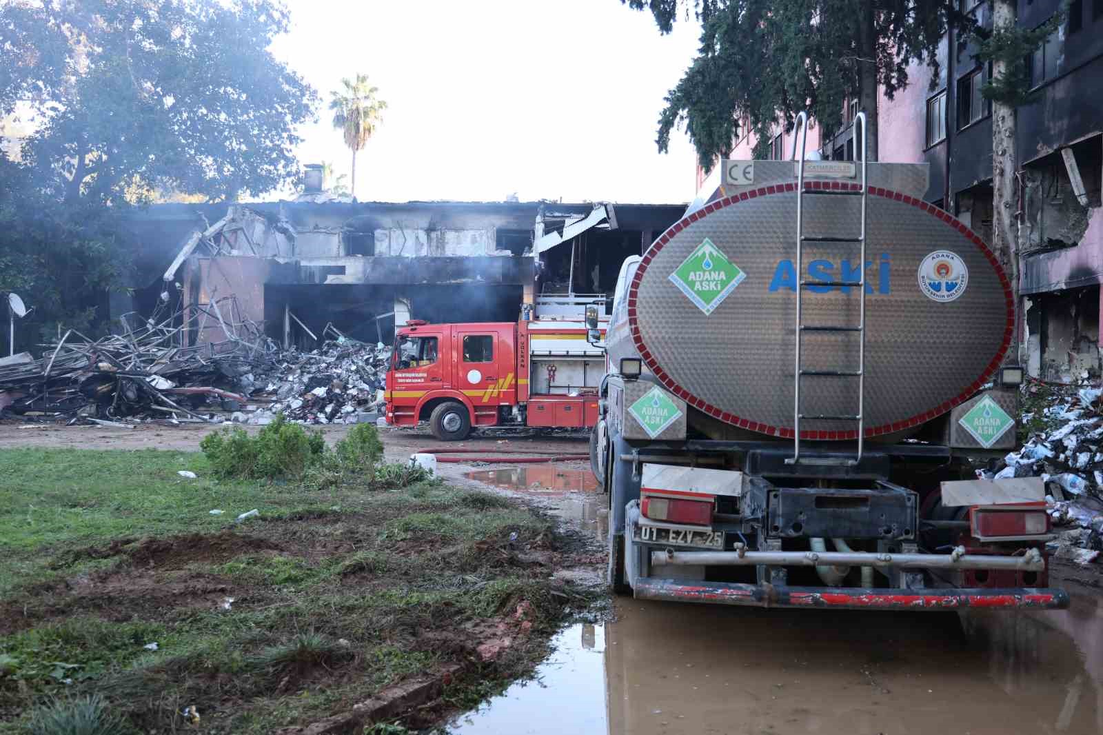 Adana’da eski devlet hastanesinde çıkan yangında 20 saat geride kalırken, itfaiye ekiplerinin soğutma çalışmaları devam ediyor. Bina ise kullanılamaz hale geldi.