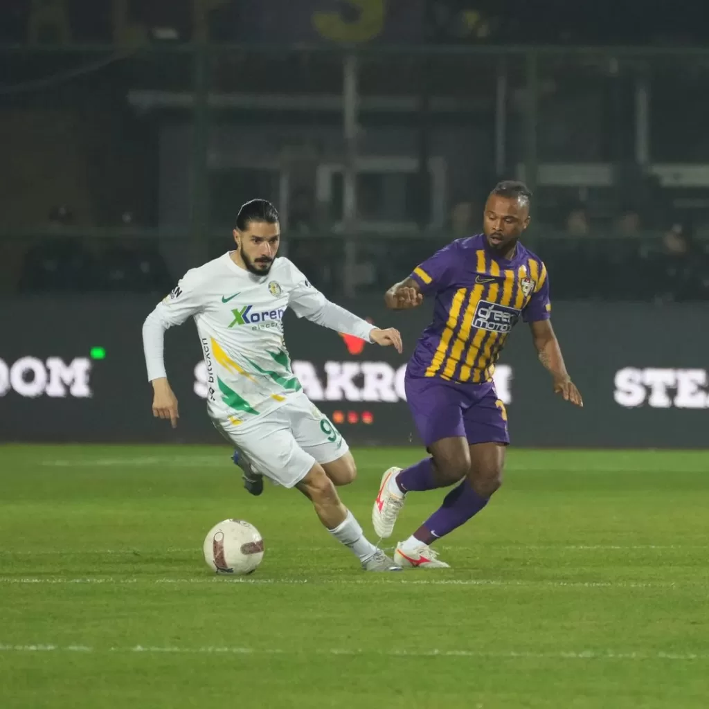- dakikada savunma arkasına atılan topu kontrol eden Ampem, ceza sahası içi sol çaprazdan yaptığı vuruşta kaleci Erzhan gole izin vermedi. Seken topu önünde bulan Recep Niyaz’ın şutunu tamamlamak isteyen Bruno’nun vuruşunda savunma çizgiden çıkardı.
