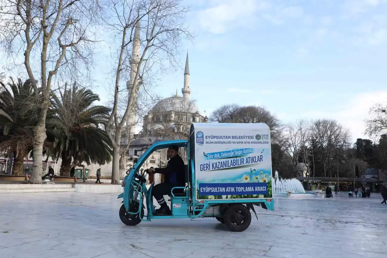 Eyüpsultan Belediyesi tarafından gerçekleştirilen “Sıfır Atık” çalışmaları çerçevesinde Eyüp Sultan Camii Meydanı ve çevresinde triportör adı verilen araçlar hizmete alındı.