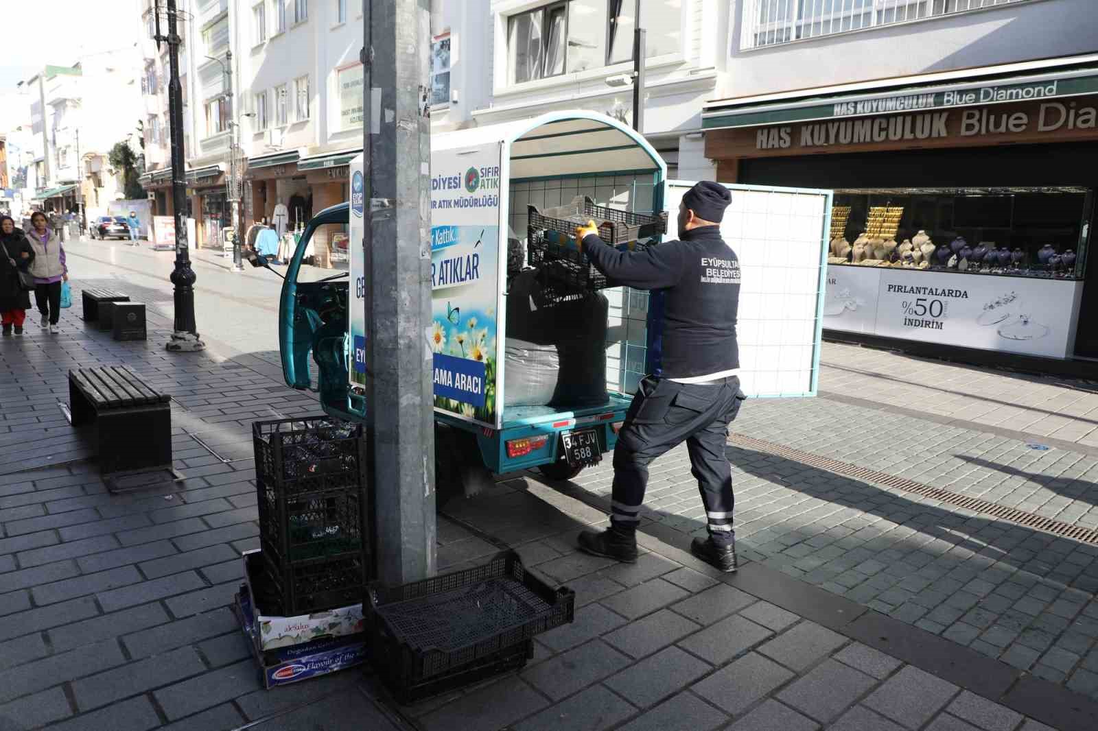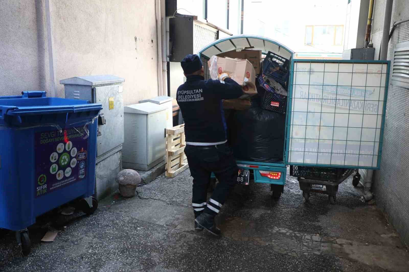 Eyüpsultan Belediyesi, daha temiz bir çevre ve sürdürülebilirliği artırmak için “Sıfır Atık” çalışmalarına devam ediyor. İlçede triportör adı verilen üç tekerlekli araçlarla geri dönüştürülebilir atıklar toplanmaya başlandı. Araçlar 09.00-18.00 saatleri arasında cami meydanında bulunan market, bakkal gibi dükkanlardan geri dönüşümü yapılabilen kağıt, pet şişe, plastik, karton ve metal meşrubat kutuları gibi atıkları topluyor. Bu çalışma sayesinde israf engellenerek, doğaya zarar veren maddelerin geri dönüştürülerek ekonomiye katkı sağlaması hedefleniyor. Bazı özel günlerde çalışma saatlerinde değişiklik yapılabilirken, dükkanlarda farklı zamanlarda ambalaj atığı çıkarıldığında belediye personeli ile irtibata geçiliyor ve malzemeler alınıyor.