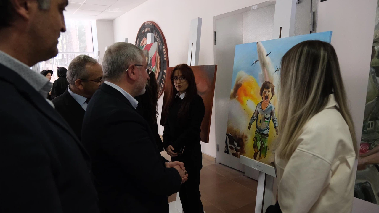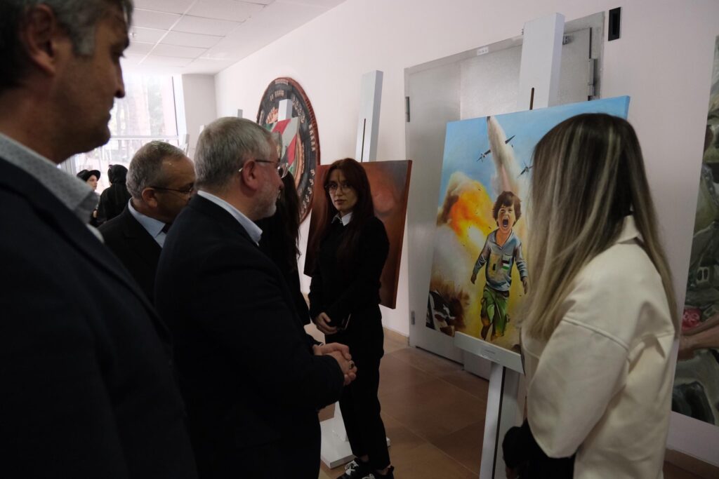 “Sanat Dünyası Duyarsız Kalmamalı”Filistin’de yaşananlara sanat dünyasının duyarsız olmaması gerektiğinin altını çizen Başkan Aşgın, “Şu anda dünyadaki bütün sanatçılar, vicdanlı sanatçılar kendi sanatlarının ürünü olarak bu konuya dikkat çekiyorlar. Dünyadaki bir çok sinema yıldızından tiyatrocuları, ressamlardan fotoğraf sanatçılarına bir çok sanat kolundaki vicdanlı sanatçılar yaşananlara duyarsız kalmıyor. Çığlıklarını atıyorlar. Seslerini yükseltiyorlar. O anlamda böylesine güzel bir çalışmayı geleceğimizin sanatçıları ve ressamları olarak gördüğümüz Güzel Sanatlar Fakültemizin öğrencileri öğretmenleriyle birlikte yapmışlar. Bundan onur ve şeref duyarız. Bu sadece burada kalmamalı. Çorum Belediyesi olarak bu sergimizi Güzel Sanatlar Galerimizde de açacağız” şeklinde konuştu.