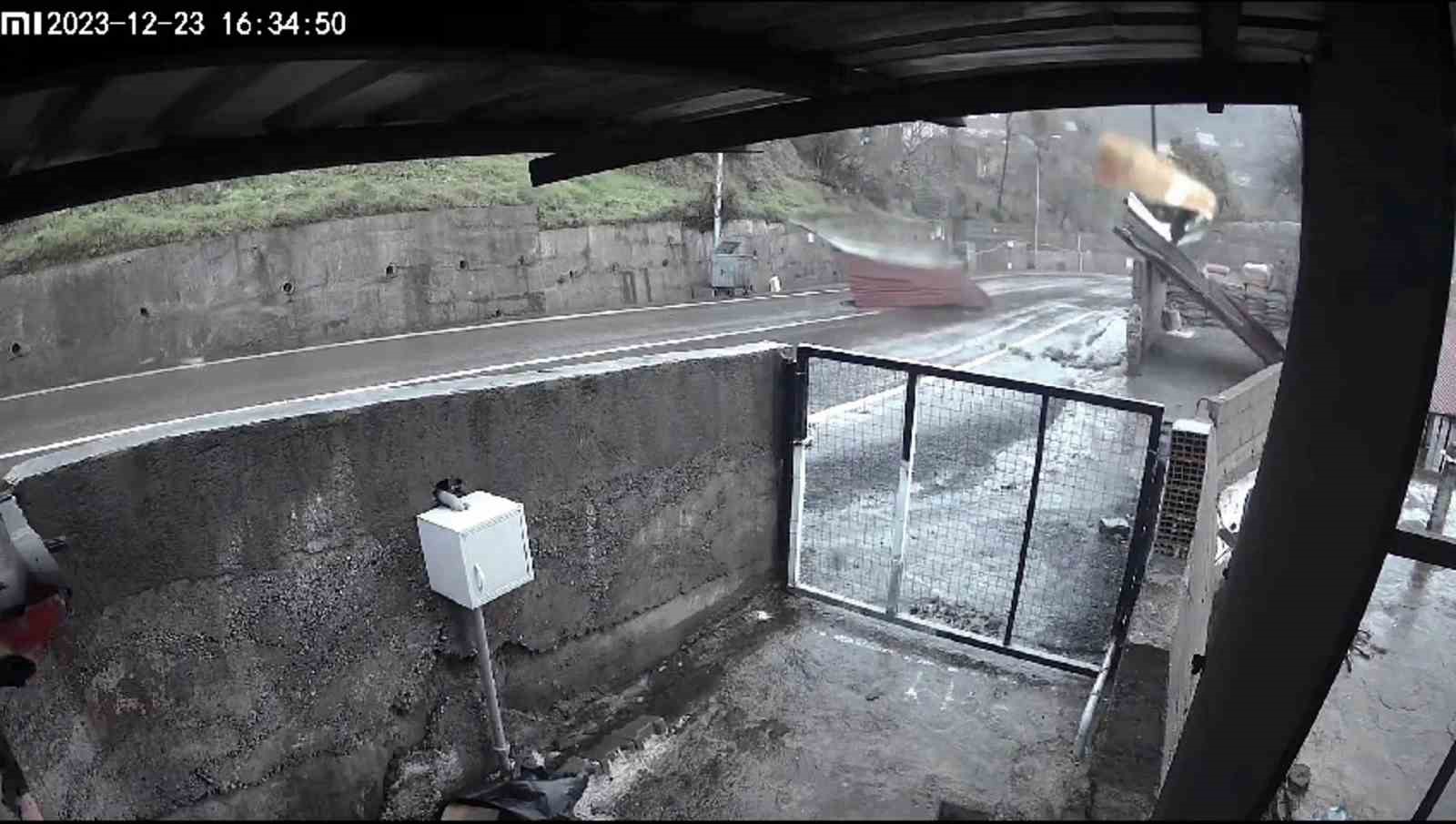 Zonguldak’ta etkili olan fırtına çatıları uçurdu. Kilimli ilçesindeki garajın çatısının uçma anı ise saniye saniye güvenlik kamerasına yansırken, kısa sürede olay yerine ekipler bölgede çalışma yaptı.
