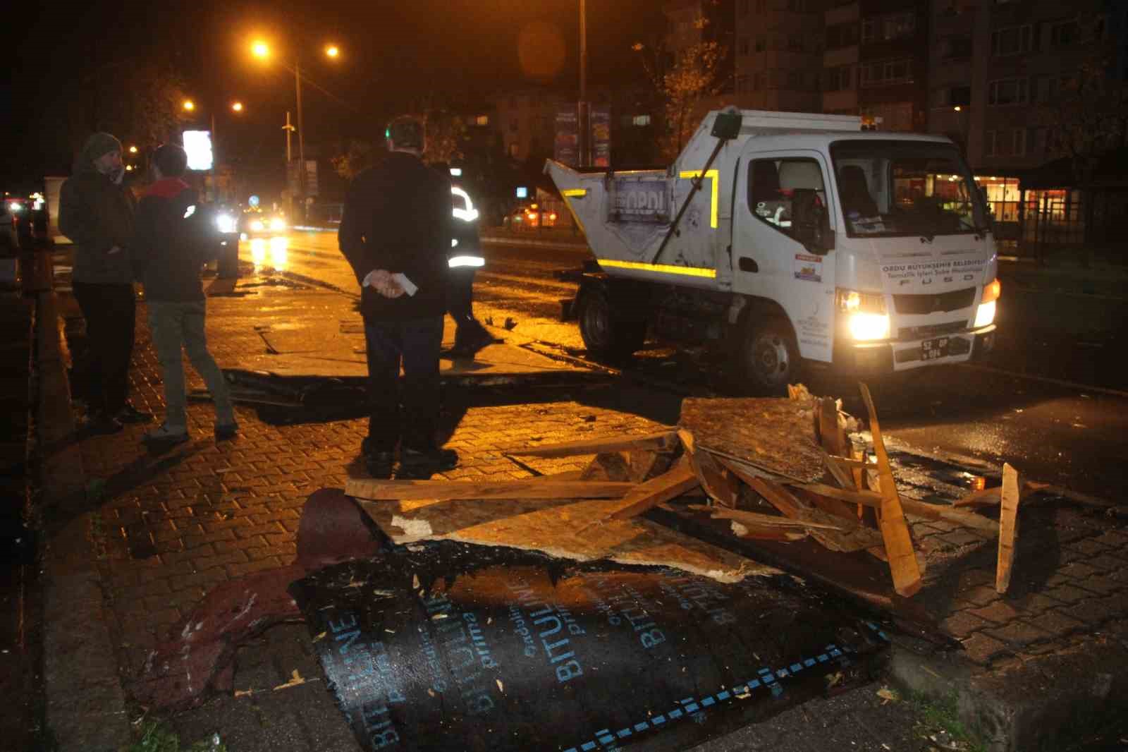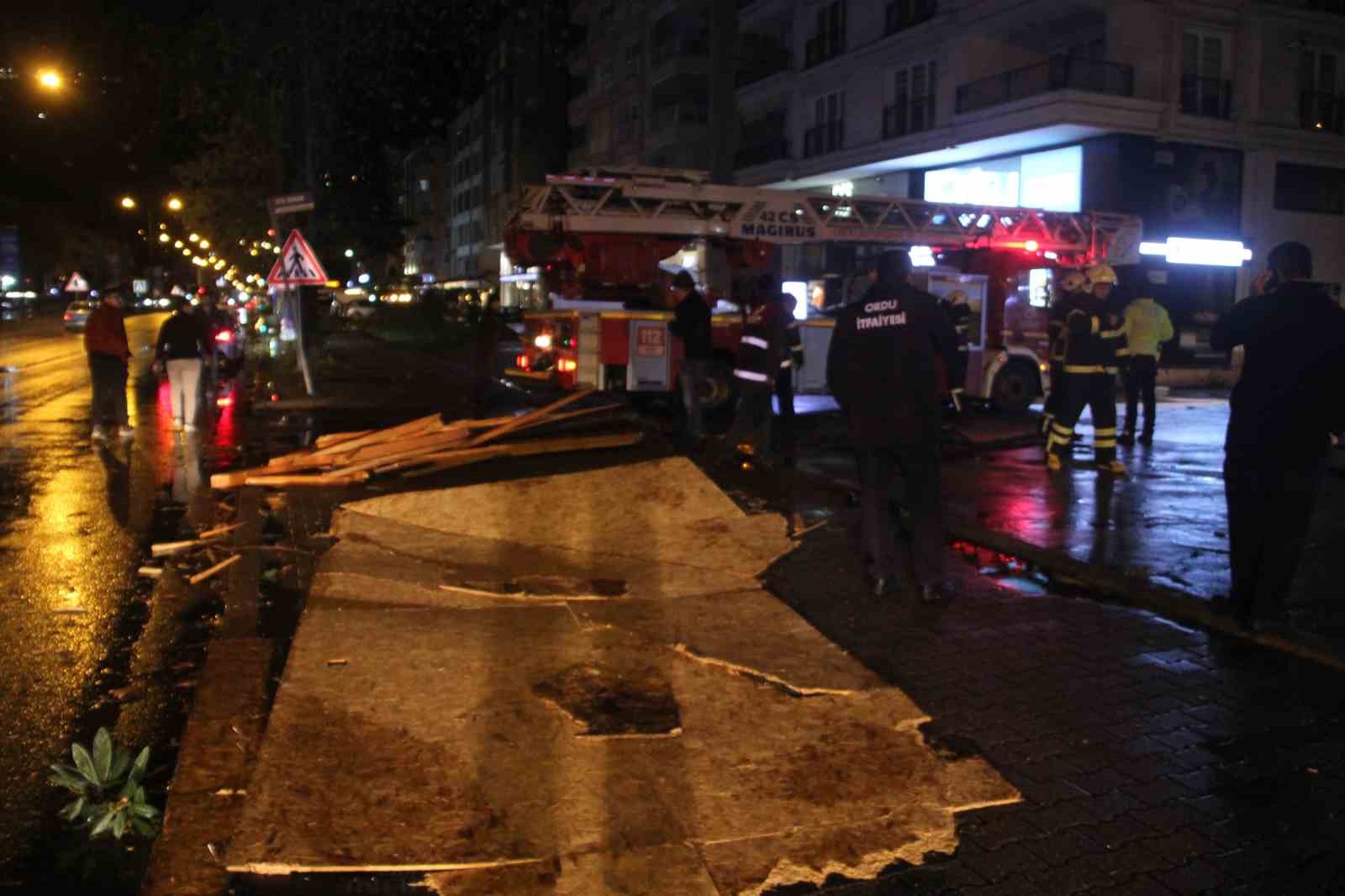 İl genelinde akşam saatlerinde başlayan rüzgar, bir süre sonra fırtınaya dönüştü. Sağanak ile birlikte etkili olan fırtına sonra Altınordu ve bazı ilçelerde binaların çatıları uçtu. Çatı uçmaları sonrası bazı mahalle yoları ulaşıma kapanırken, uçan çatılar ise park halindeki araçlara zarar verdi. İtfaiye, polis, Ordu Büyükşehir ve ilçe belediye ekipleri alanlarda çalışma başlattı.