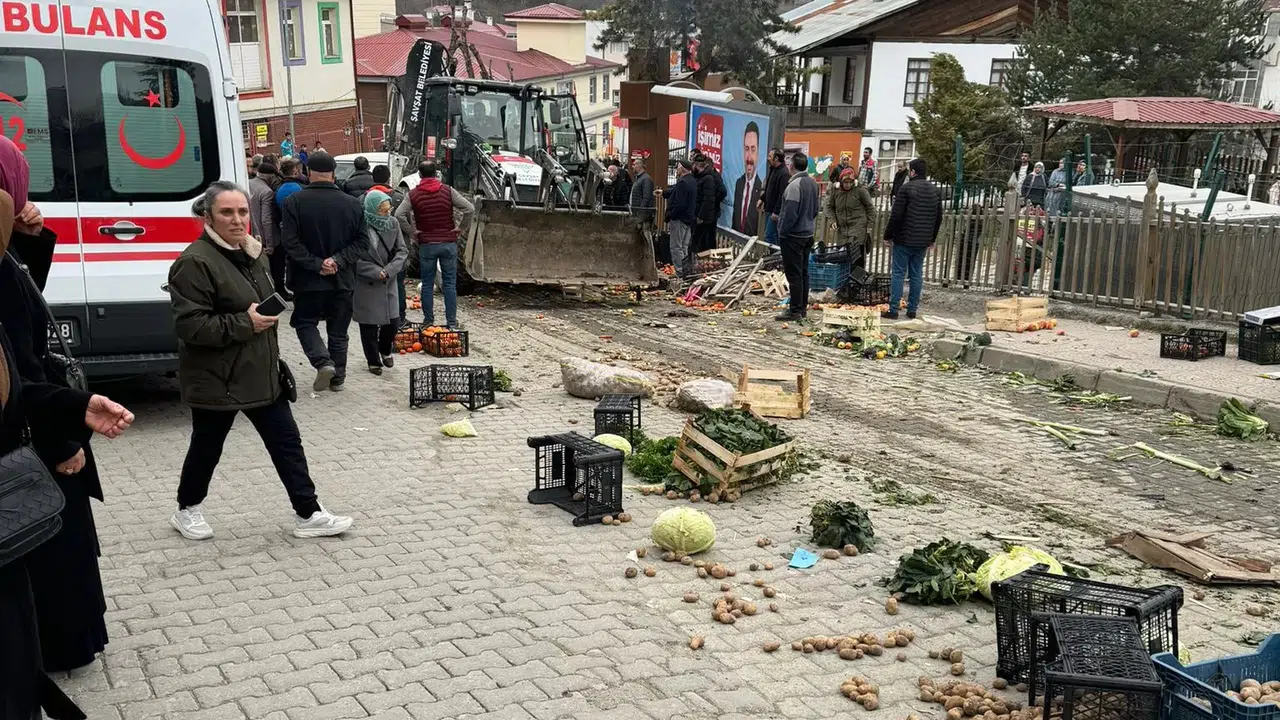 Artvin’in Şavşat ilçesinde freni boşalarak yokuş aşağıya kayan iş makinesi, caddeye kurulan pazarın içerisine daldı. Kaza sonucu 1 kişinin hafif şekilde yaralandığı olayda maddi hasar meydana geldi.