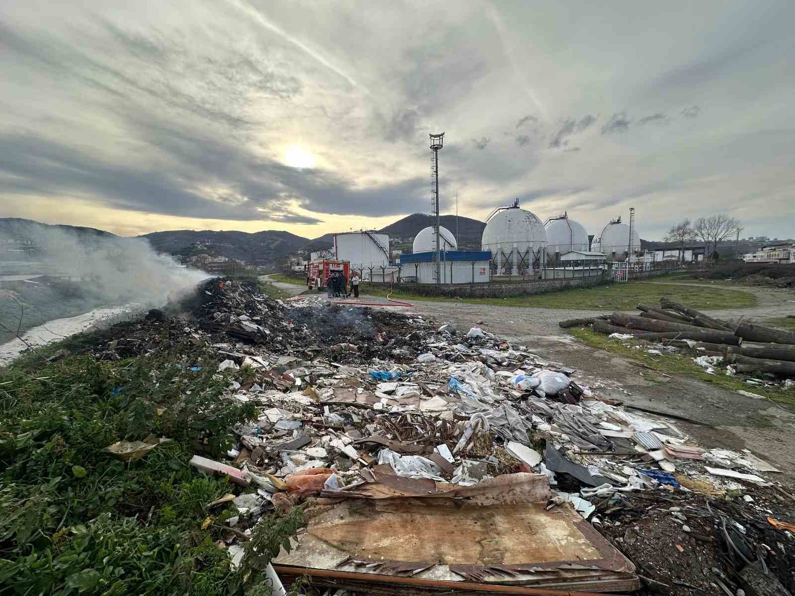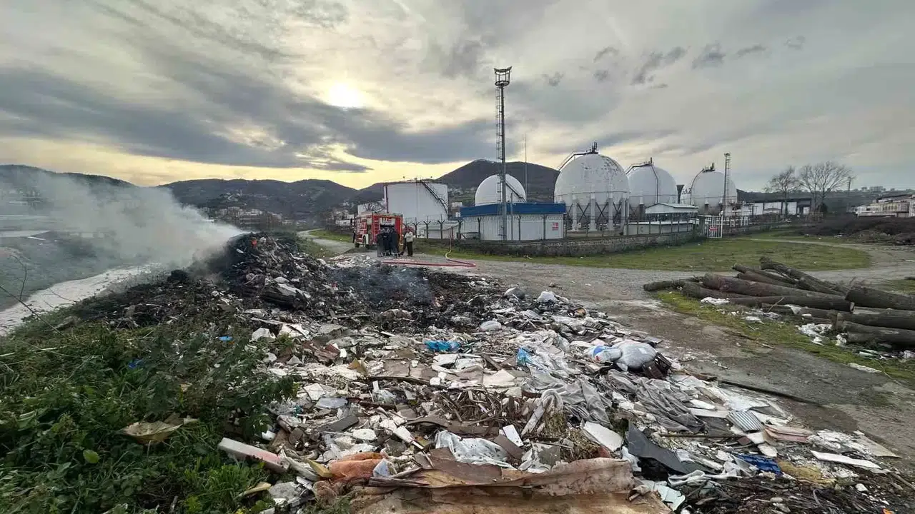 Samsun’da bir gaz dolum tesisisin yanındaki boş arazide atık malzemelerin yanması çevrede paniğe yol açtı.