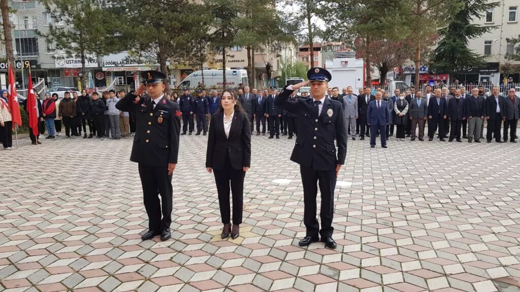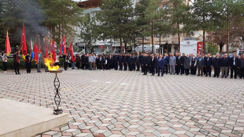 Atatürk büstüne çelenklerin sunulmasının ardından saatler 09.05’i gösterdiğinde törene katılan protokol üyeleri, daire müdürleri, sivil toplum kuruluşları temsilcileri, öğrenciler ve vatandaşlar saygı duruşunda bulundu. İstiklal Marşı’nın okunmasıyla devam eden program günün anlam ve öneminin belirten konuşmalar ve şiirlerin okunmasıyla sona erdi.