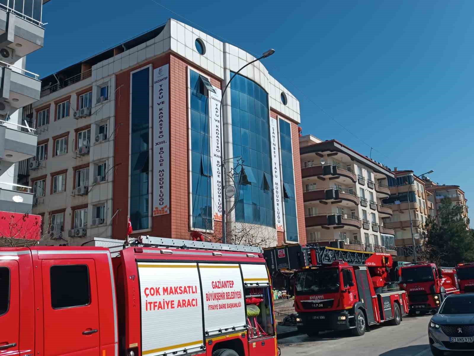 Gaziantep’te, 5 katlı Şahinbey Tapu ve Kadastro Bölge Müdürlüğü binasının teras katında misafirhane ve yemekhanenin bulunduğu katta yangın çıktı.