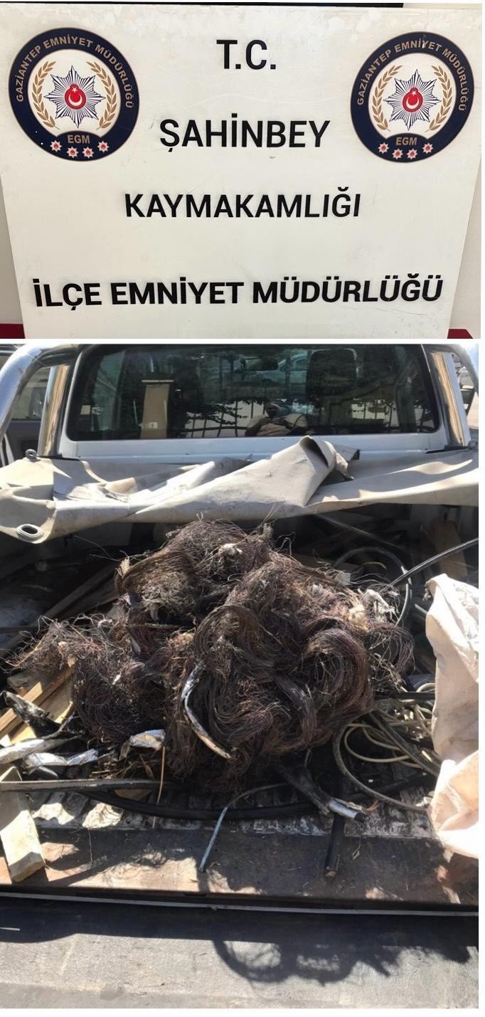Gaziantep’te Cumhuriyet Başsavcılığı koordinesi ve Şahinbey İlçe Emniyet Müdürlüğü ekiplerince 70 ayrı adreste kablo hırsızlığı olaylarını gerçekleştirdiği tespit edilen 2 şüphelinin yakalanması için operasyon düzenlendi. Hırsızlık olaylarıyla ilgili 2 şüpheli yakalanıp gözaltına alındı. Çeşitli elektronik ürünlerin kablolarını çaldıkları belirlenen 2 şüpheliler, çaldıkları malzemelerle yakalandılar.