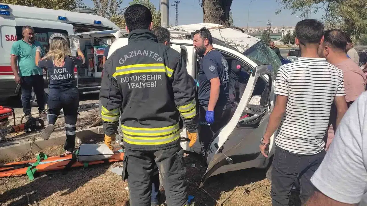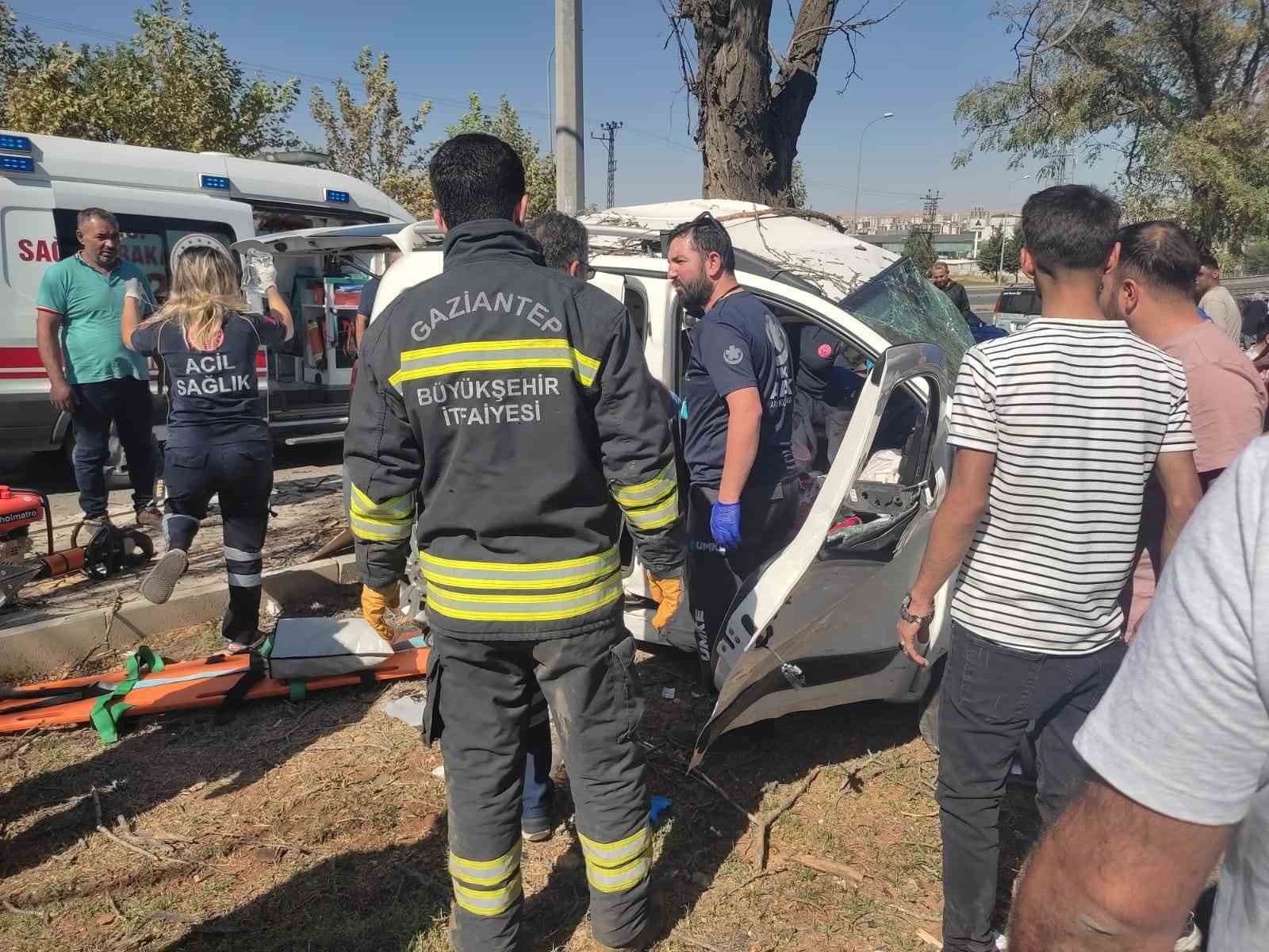 Gaziantep’te Kontrolden Çıkan Araç Ağaca Çarparak Durabildi: 2 Yaralı