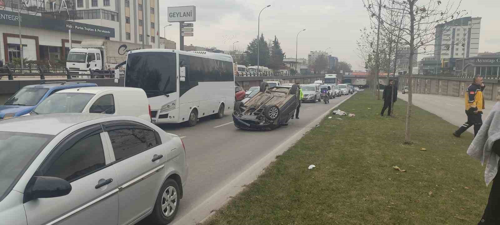 Gaziantep İpekyolu’nda seyir halinde bulunan 34 DNZ 49 plakalı Opel marka otomobilin sürücüsü, bir anda aracın direksiyon hakimiyetini kaybetti. Kontrolden çıkan takla atarak ters döndü. Kazada araç sürücüsü ve yanında bulunan yolcular yaralandı. Çevredeki vatandaşların ihbarı üzerine olay yerine gelen 112 Acil Servis ekiplerinin yaralılara olay yerinde yaptığı ilk müdahalenin ardından yaralılar Gaziantep’teki hastanelere kaldırıldı.