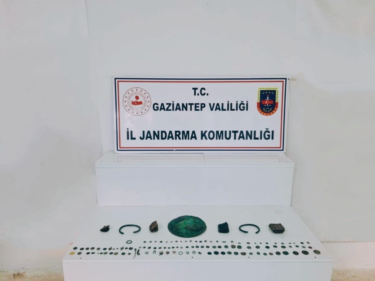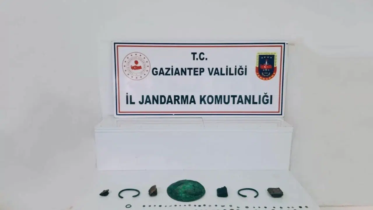Gaziantep’te jandarma ekiplerinin yaptığı operasyonda tarihi eser niteliği taşıyan çok sayıda sikke, yüzük, kitap, metal obje ve tabak ele geçirildi. Operasyon sonucunda 2 şüpheli şahıs gözaltına alındı.