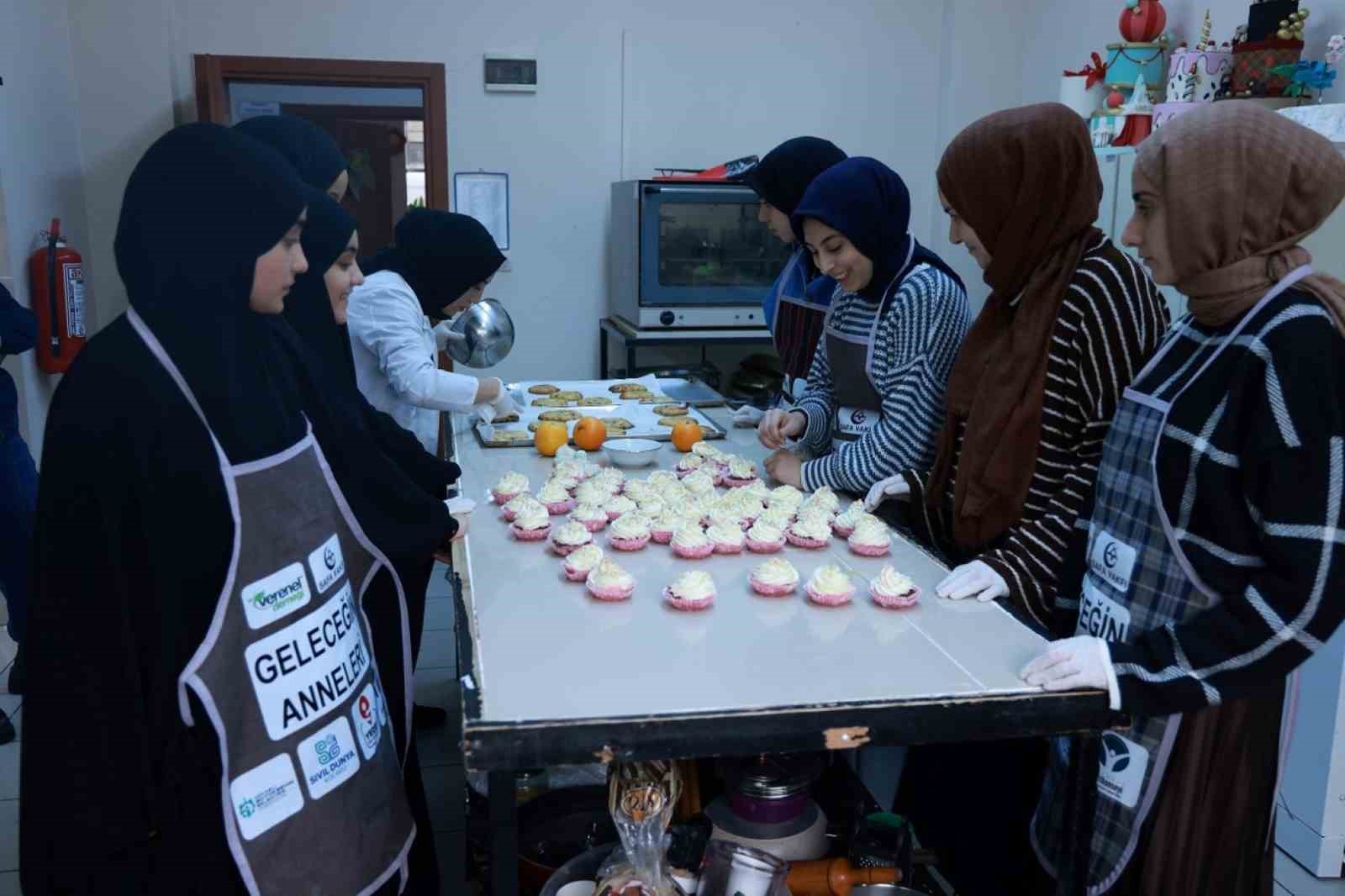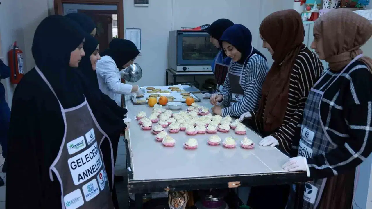 Kocaeli’de geleceğin anne adayları mutfakta becerilerini sergileyerek pizza, cookie, İzmir bomba ve cup kek yapımını öğrendi.