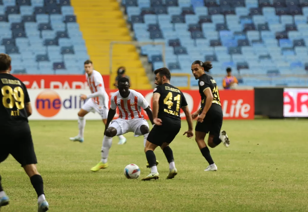 İlk yarıda nadir ve cılız gelişen Adanaspor ataklarına engel olan Kırmızı-Siyahlılar devreyi 2-0 önde kapattı.