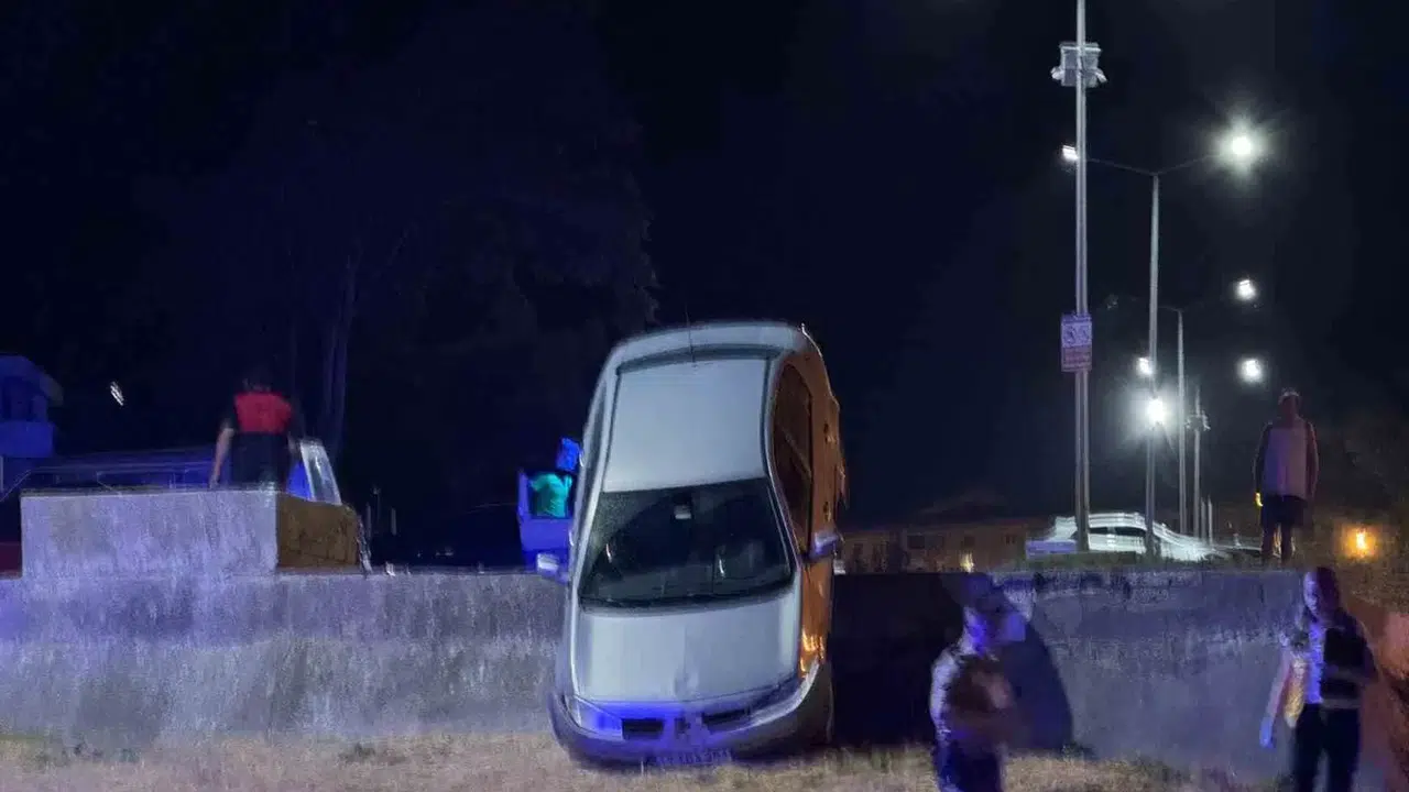 Çanakkale’nin Gelibolu ilçesinde bir otomobil otopark duvarında asılı kaldı. Sürücü G.G. 3,93 promil alkollü çıktı.