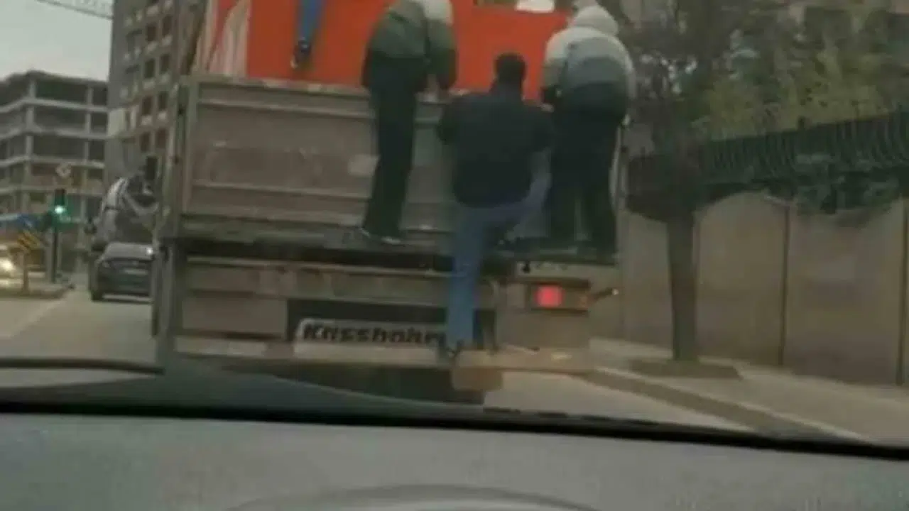 Bursa’da 3 genç, kamyonun arkasında canlarını hiçe sayarak seyahat etti. O anlar kameraya anbean yansıdı.