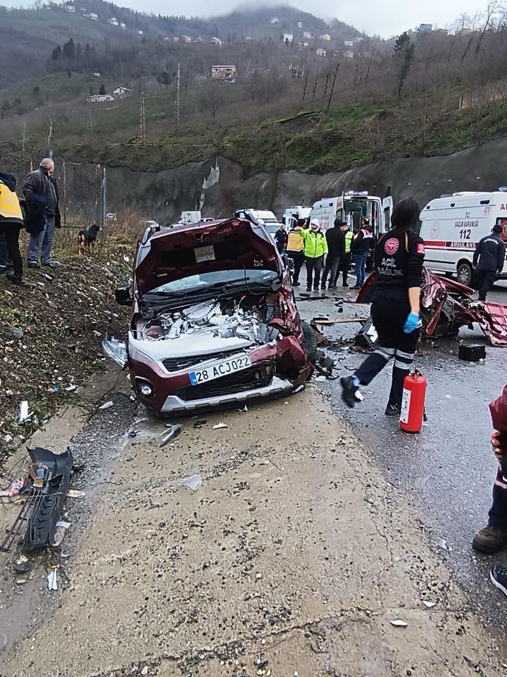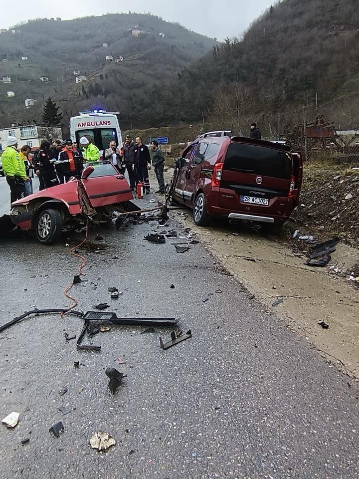 Edinilen bilgilere göre, Dereli’den Giresun istikametine seyir eden Ali A. idaresindeki 28 ER 663 plakalı Kartal marka otomobil, Çalca mevkiinde karşı yönden gelen Adem E. idaresindeki 28 ACJ 022 plakalı Fiat marka araçla kafa kafaya çarpıştı. Çarpışmanın etkisiyle Kartal marka otomobil ikiye bölünerek hurdaya döndü. Meydana gelen kazada sürücü Ali A. ile diğer araçta bulunan sürücü Adem E. ve N.E., D.E., Y.E. ve A.A. yaralandı. Yaralılar olay yerine gelen sağlık görevlilerinin yaptığı ilk müdahalenin ardından il merkezindeki çeşitli hastanelere sevk edildi.