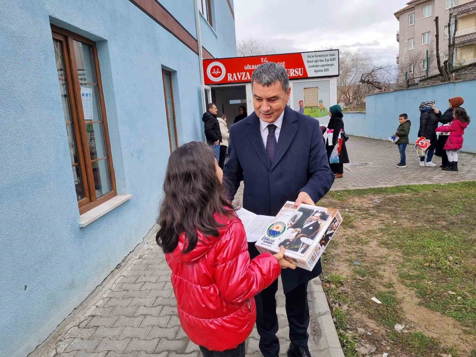 Ankara’nın Gölbaşı Belediye Başkanı Ramazan Şimşek, ilçede faaliyet gösteren okulları ziyaret ederek yarıyıl tatiline giren öğrencilere karnelerini dağıttı. Şimşek, öğrencilere kitap seti, puzzle ve oyuncak hediye etti.