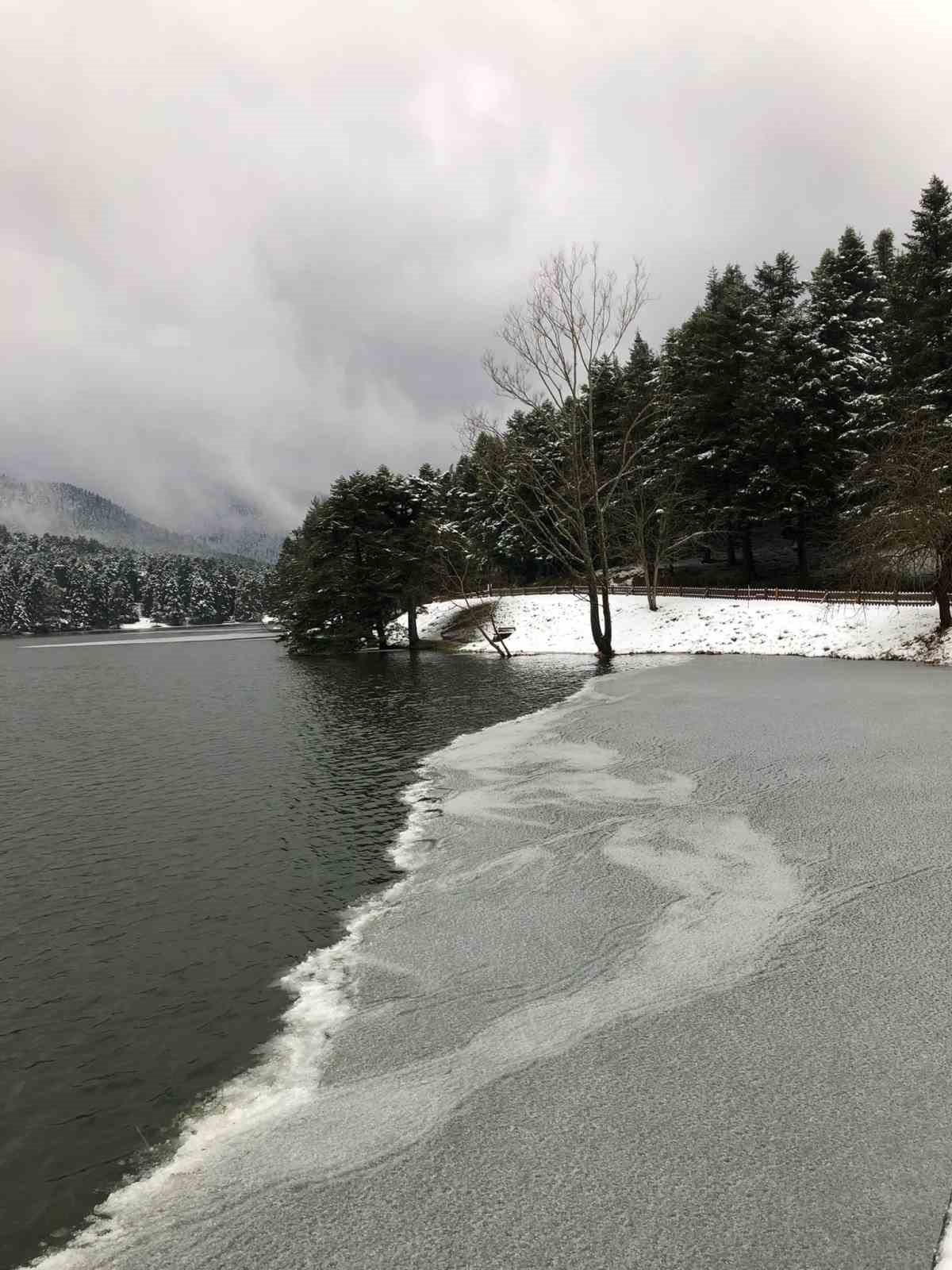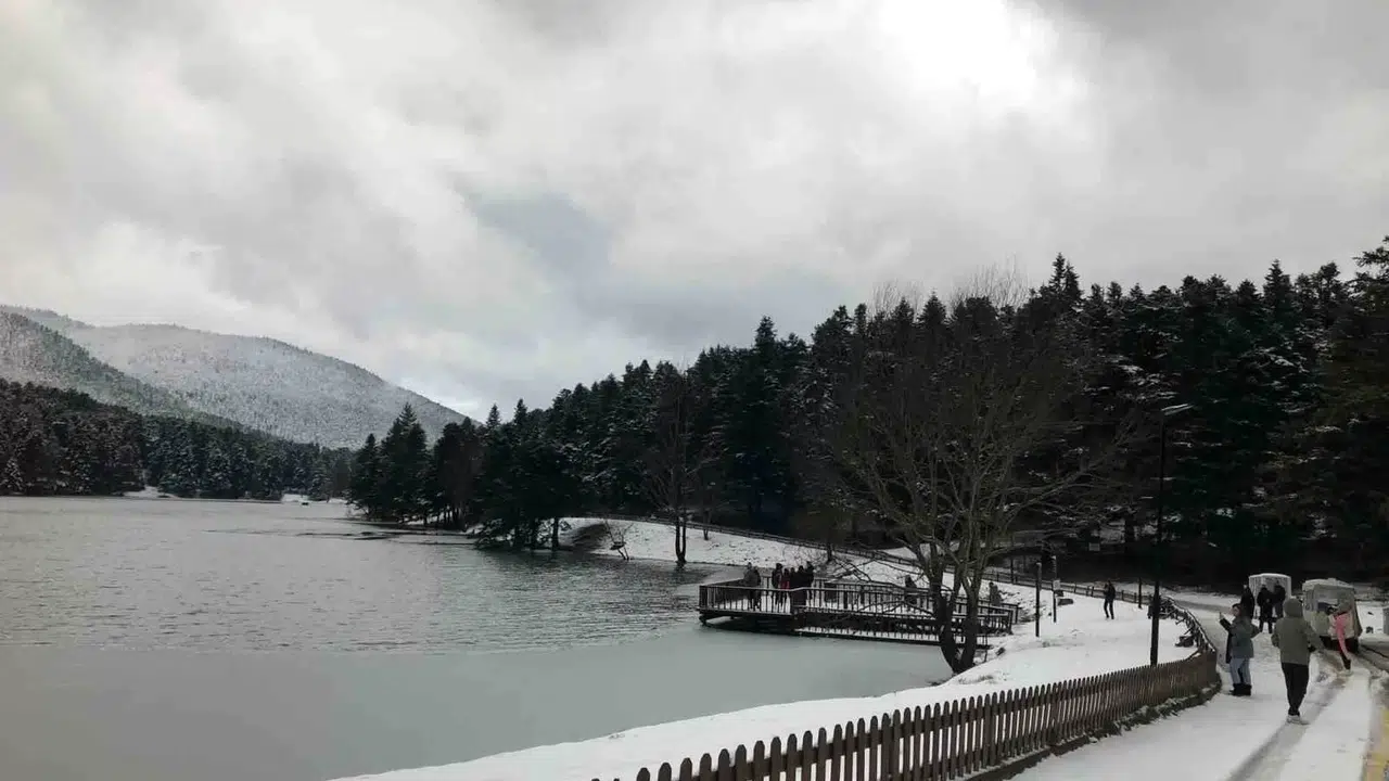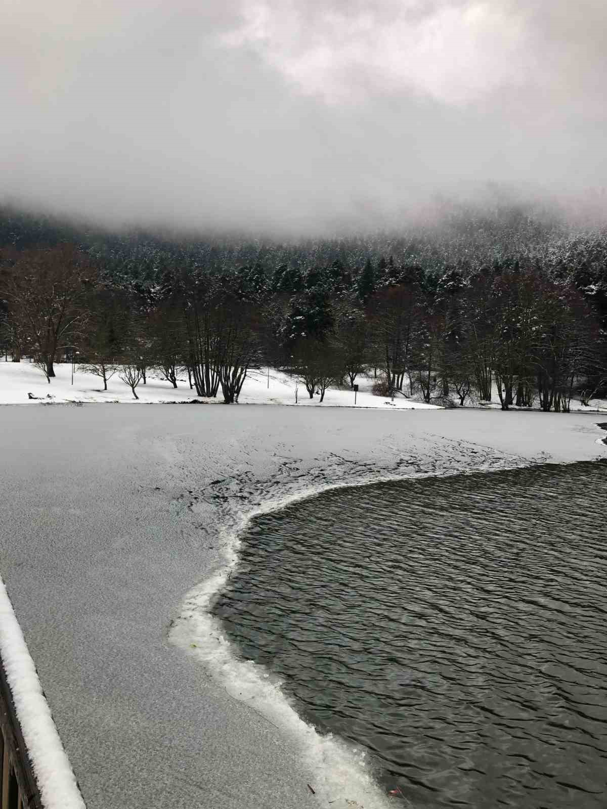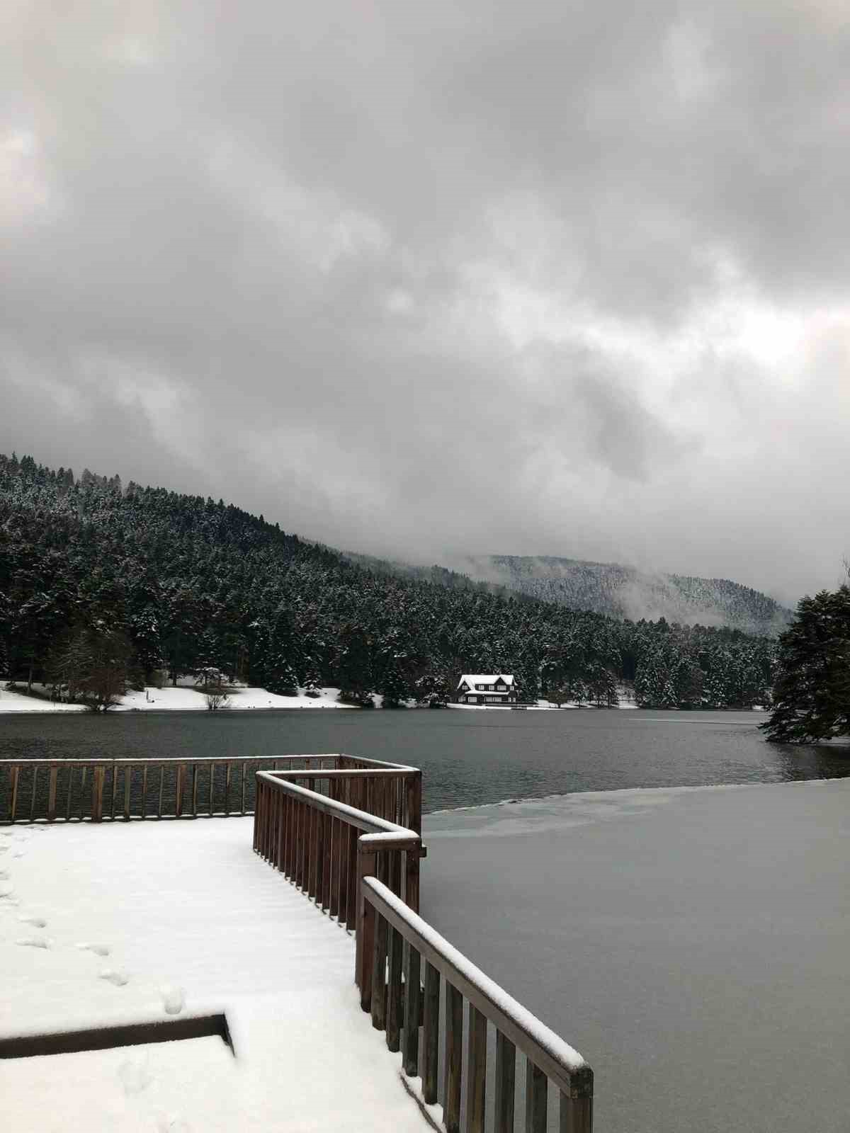 Bolu’nun doğa harikası Gölcük Tabiat Parkı’ndan gece saatlerinde kar yağışı etkili oldu. Kar kalınlığının 15 santimetreye ulaştığı ölçülen Gölcük Tabiat Parkı’nda bulunan göl, hava sıcaklıklarının sıfırın altına düşmesiyle buz tuttu. Bolu Belediyesi ekipleri “Donmuş göl yüzeyine çıkmak tehlikeli ve yasaktır” tabelasıyla ziyaretçileri uyardı.