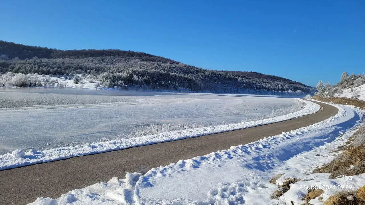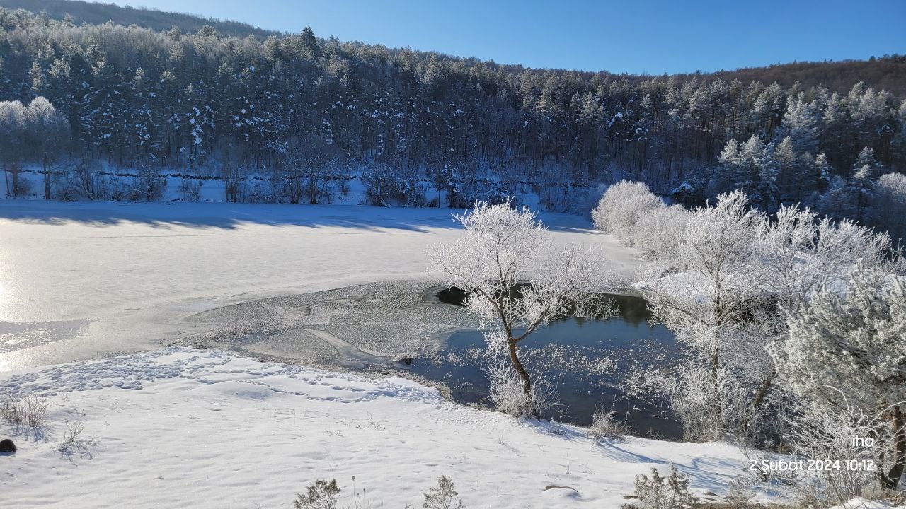 Karabük’ün Eflani ilçesinde kar yağışının ardından etkili olan soğuk hava nedeniyle ilçede yer alan göletlerin yüzeyleri ile ağaçlar buz tuttu.