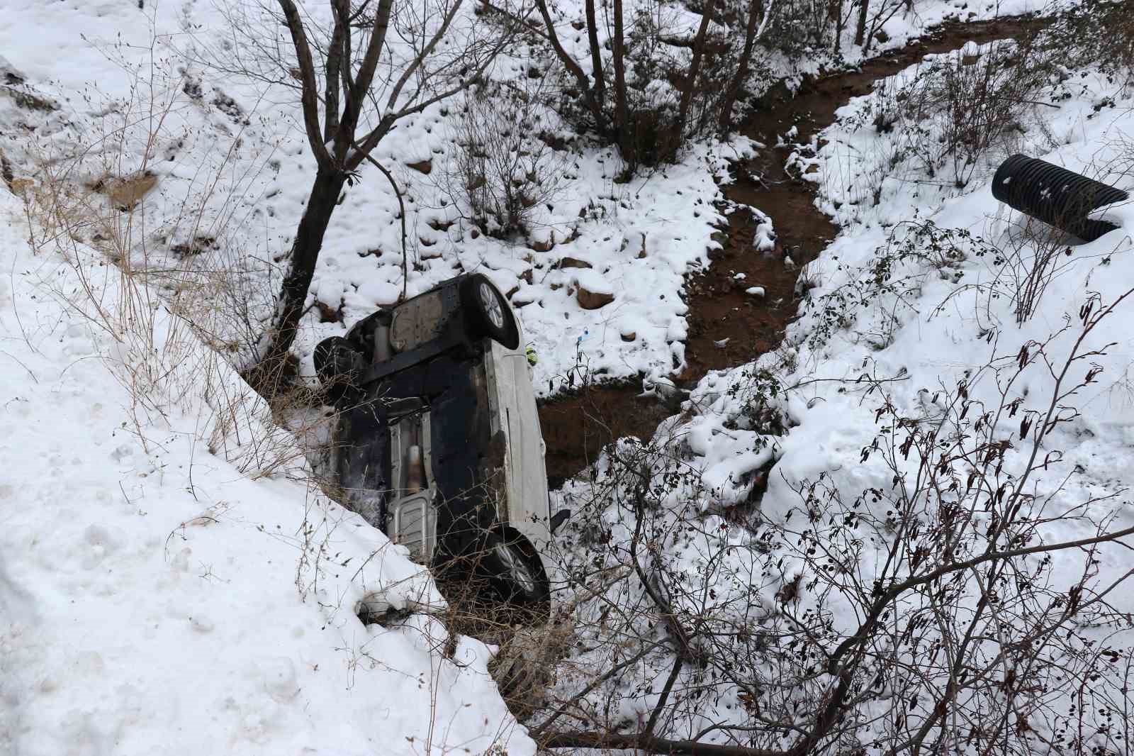 Gümüşhane’de kar yağışı nedeniyle buzlanan yolda virajı alamayan otomobil köprüden uçtu. Kazada 2 kişi yaralandı.