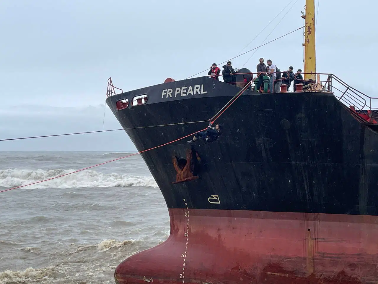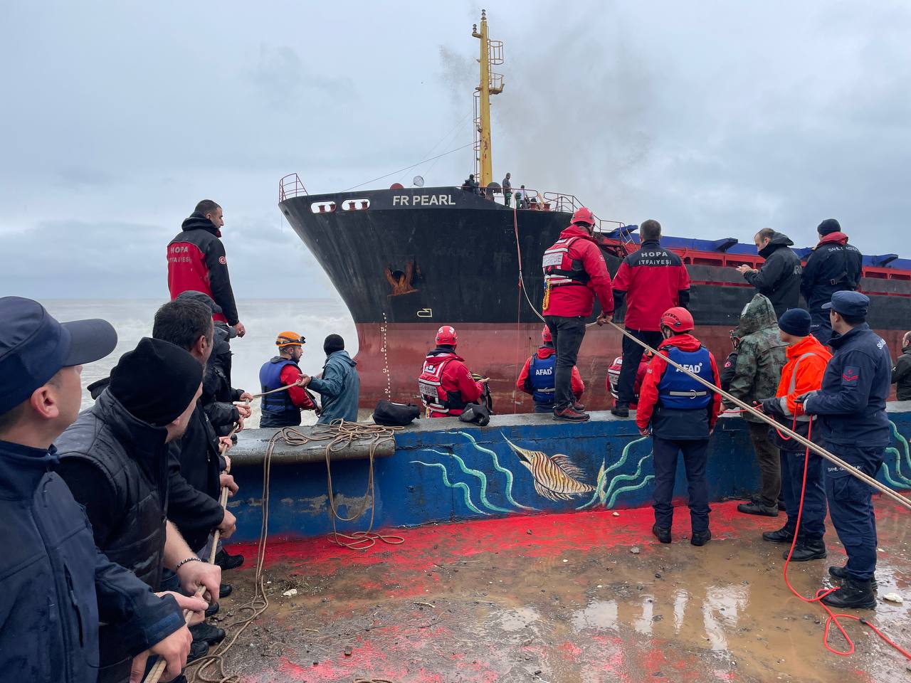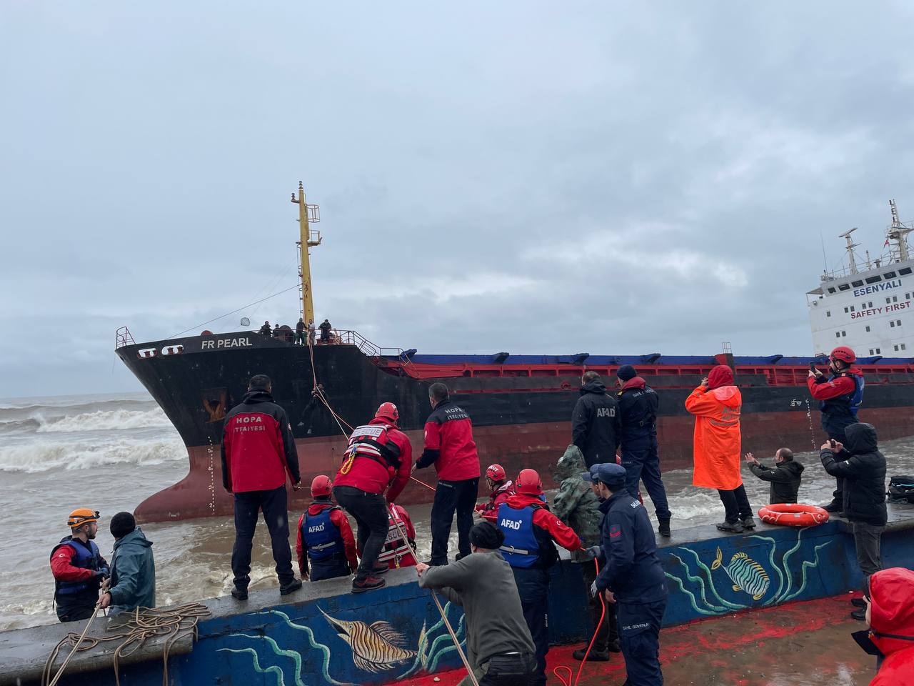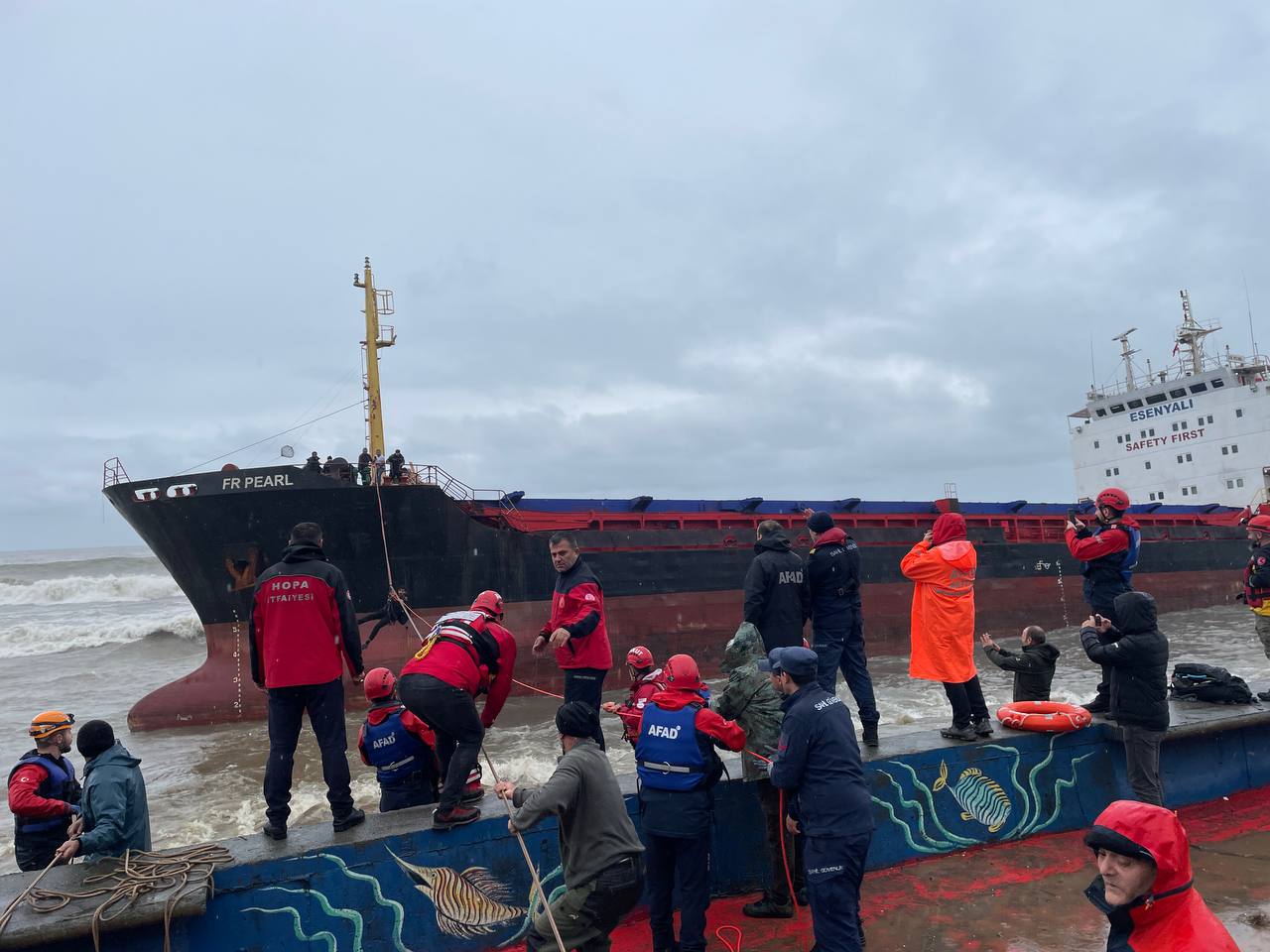 Hopa ilçesi açıklarında fırtına nedeniyle Palau bandıralı "FR Pearl" adlı kuru yük gemisi kıyıya sürüklendi.