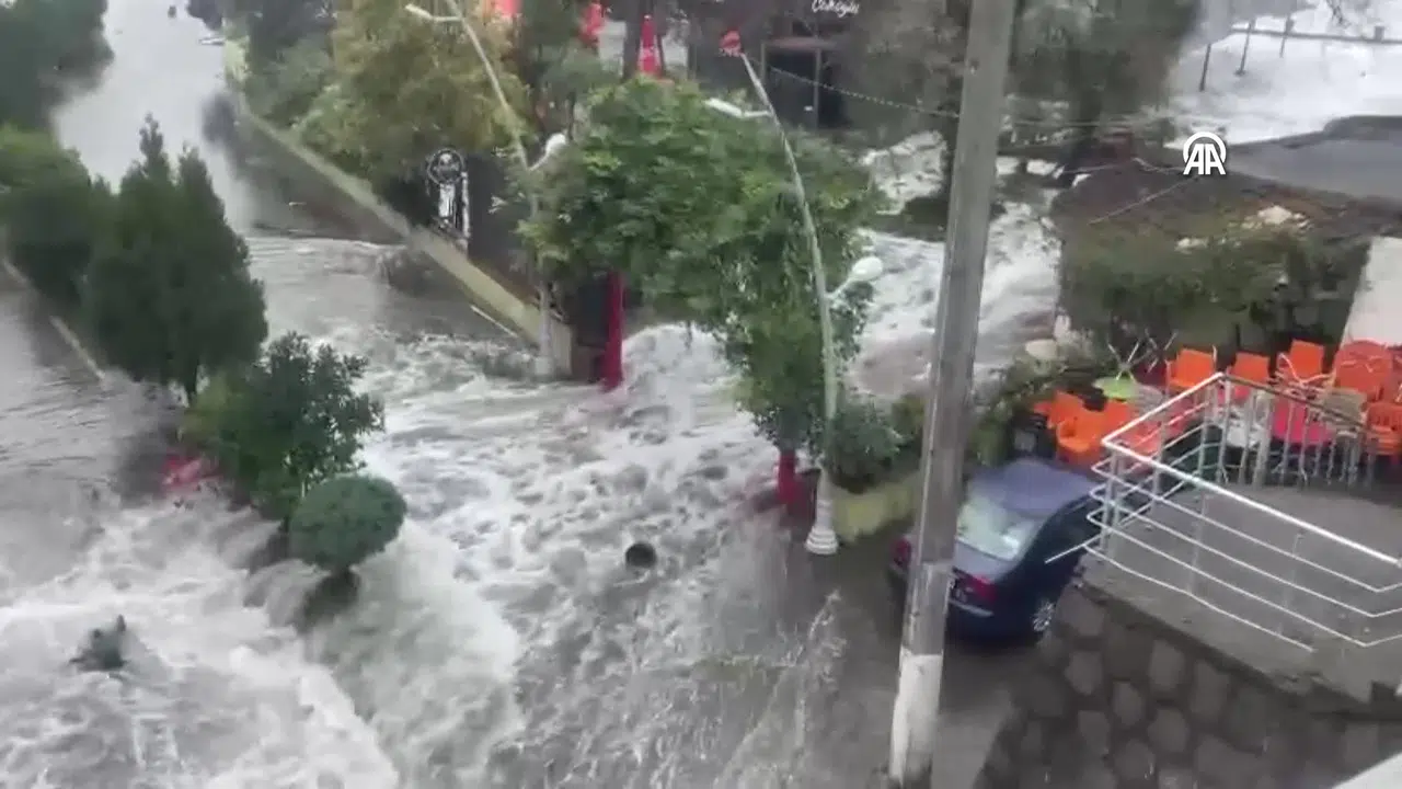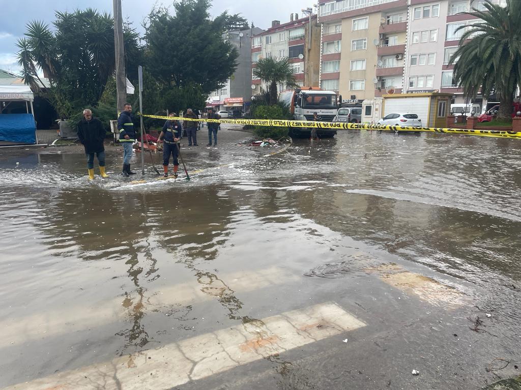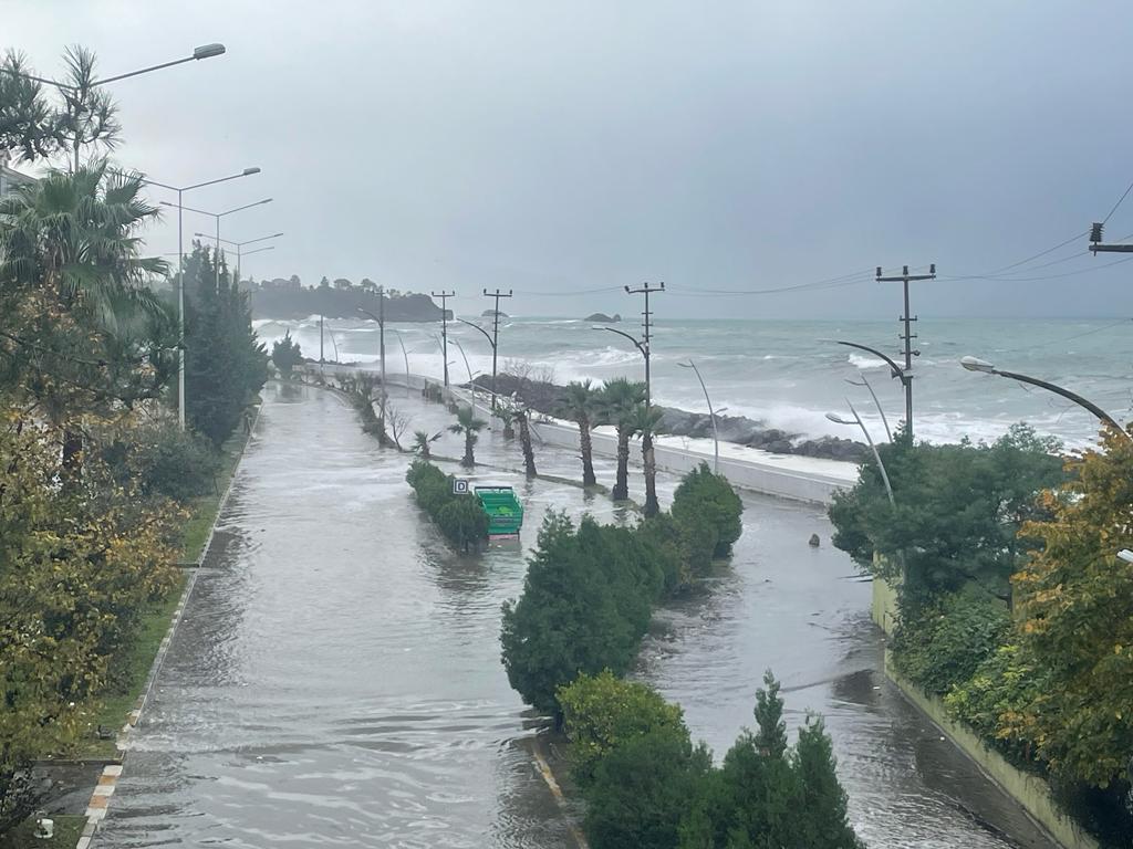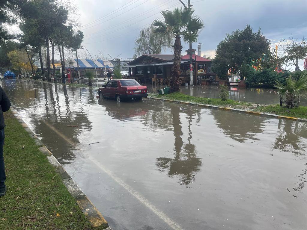 İlçe merkezinde dünden itibaren etkili olan fırtına sebebiyle denizin yükselmesi sonucu şehir içi yolu suyla kaplandı.