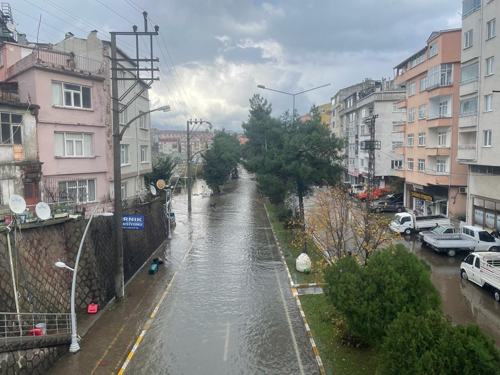 Polisin geniş güvenlik önlemi aldığı bölgede, Tirebolu Belediyesi ekipleri suların tahliyesi için çalışma yürütüyor.