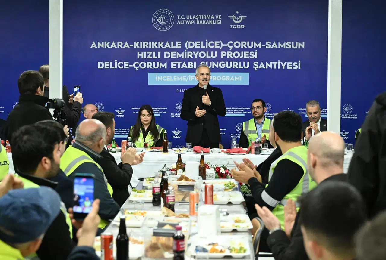 İncelemenin ardından Sungurlu şantiyesine geçen Bakan Uraloğlu ve beraberindekiler, gazetecilere açıklama yaptıktan sonra iftarda projede çalışan işçilerle bir araya geldi.