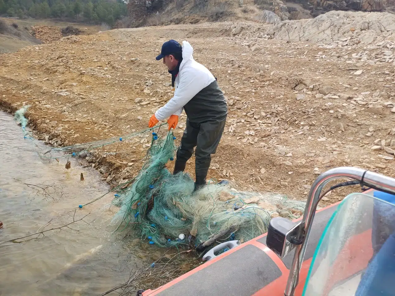 Çorum Tarım ve Orman İl Müdürlüğü ekipleri tarafından Çorum Baraj Gölü'nde gerçekleştirilen denetimlerde yasa dışı avlanmada kullanılan 600 metrelik misina ağı ele geçirilirken, 15 Mart'ta başlayan av yasağı kapsamında soğuk hava depolarında da stok tespit çalışmaları yapıldı.