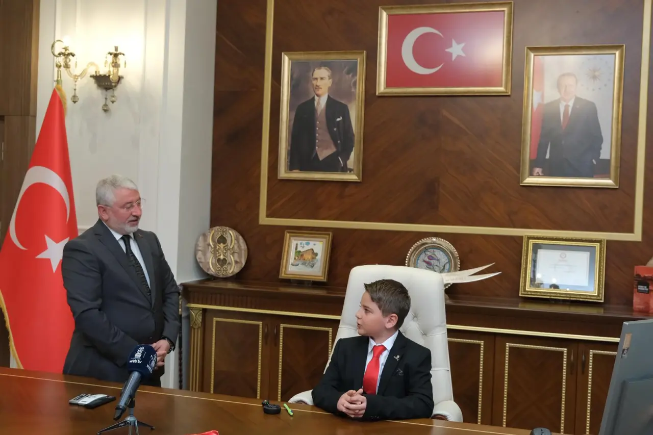 İsmail Kakaç İlkokulu 4. sınıf öğrencileri Zeynep Sözten ve Rüzgar Ali Kışla, günün anlam ve önemine uygun olarak belediye başkanlığı görevini kısa süreliğine Belediye Başkanı Dr. Halil İbrahim Aşgın’dan devraldı. Beraberinde İl Milli Eğitim Müdür Yardımcısı Tahir Demir, İsmail Kakaç İlkokulu Müdürü Cemalettin Tunç ve Sınıf Öğretmeni Filiz Türk ile birlikte makama gelen öğrenciler kendilerini hazır bekleyen birim müdürlerinden isteklerini belirttiler.