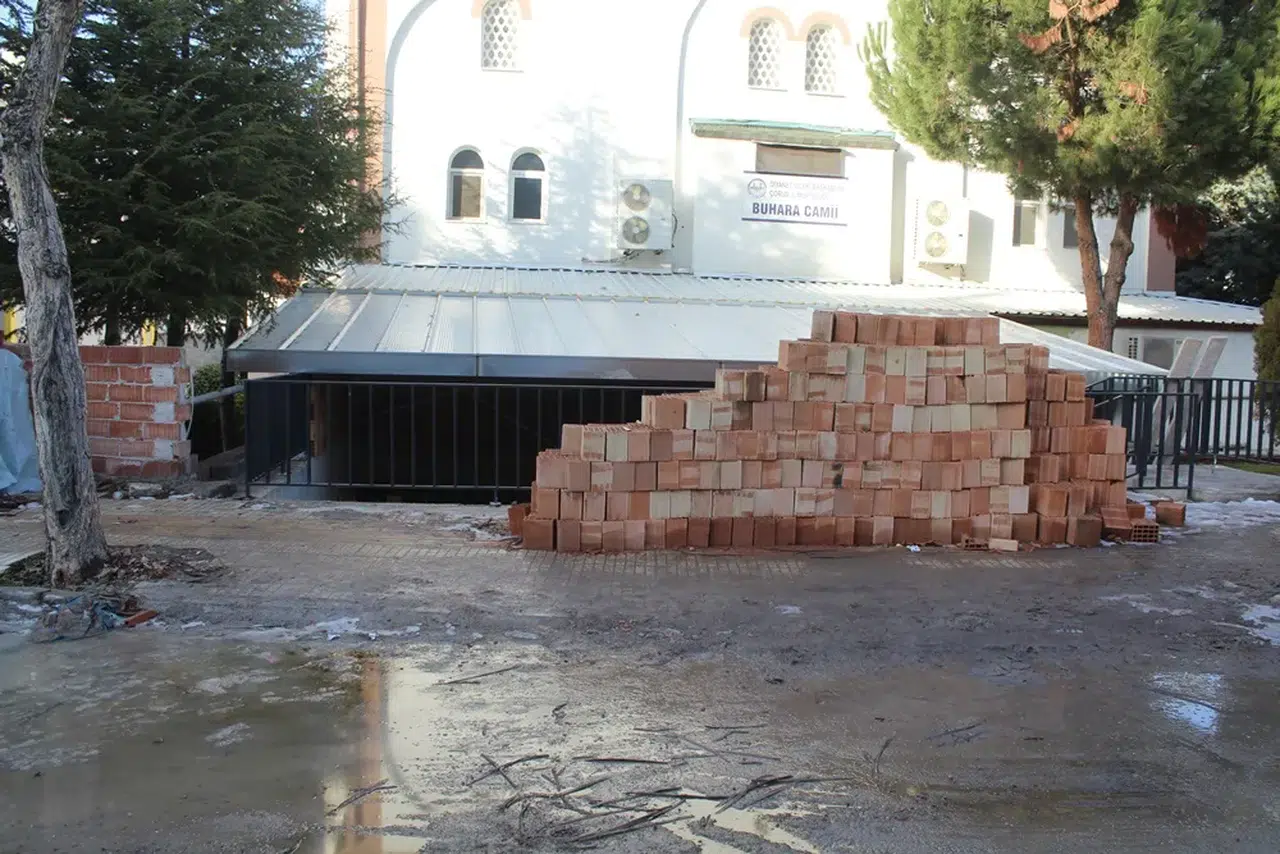 Buharaevler mahallesinde bulunan Buhara Camii önündeki manzara, mahalle sakinleri ve sokaktan geçen vatandaşlara zor anlar yaşatıyor. Caminin hemen önünde bulunan kum yığınları, çevre kirliliği oluştururken, bölgedeki bozuk zemin nedeniyle oluşan su birikintileri yolu adeta göle çeviriyor.